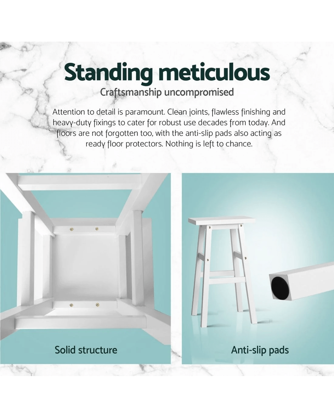 Whether it's placed at the kitchen island, breakfast corner or bar counter, the Baden Bar Stool fits nicely under the counter with minimum fuss at just the right height. The split-level footrests not only provide a good foot rest for both teens and adults, but also ensure a well-supported A-frame that will not give way easily. Not least, the contoured seat also makes for a comfortable seating while the anti-slip floor protectors keeps the Bar Stool firmly in place even with robust use.