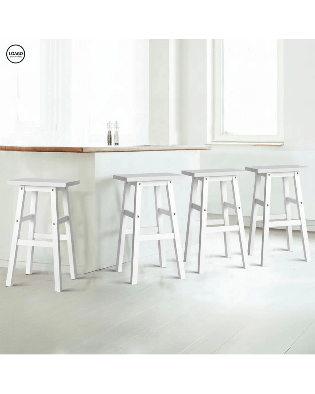 Sold by Aisle SixArtiss 4x Bar Stools Kitchen Chairs Wooden - White