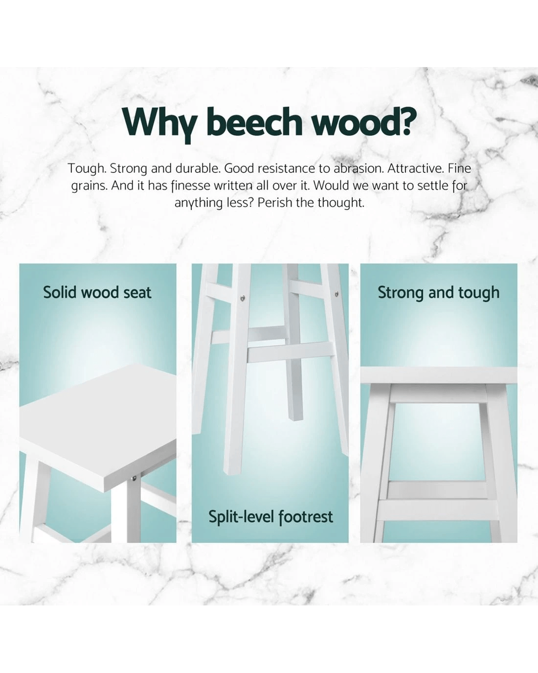 Made from quality beech wood, the Bar Stool is designed with thick seats and legs for a very solid look and feel. And it would not even look out of place in a garage or man-cave for mates to have a good time tossing back a few stubbies or a jam session with the band.