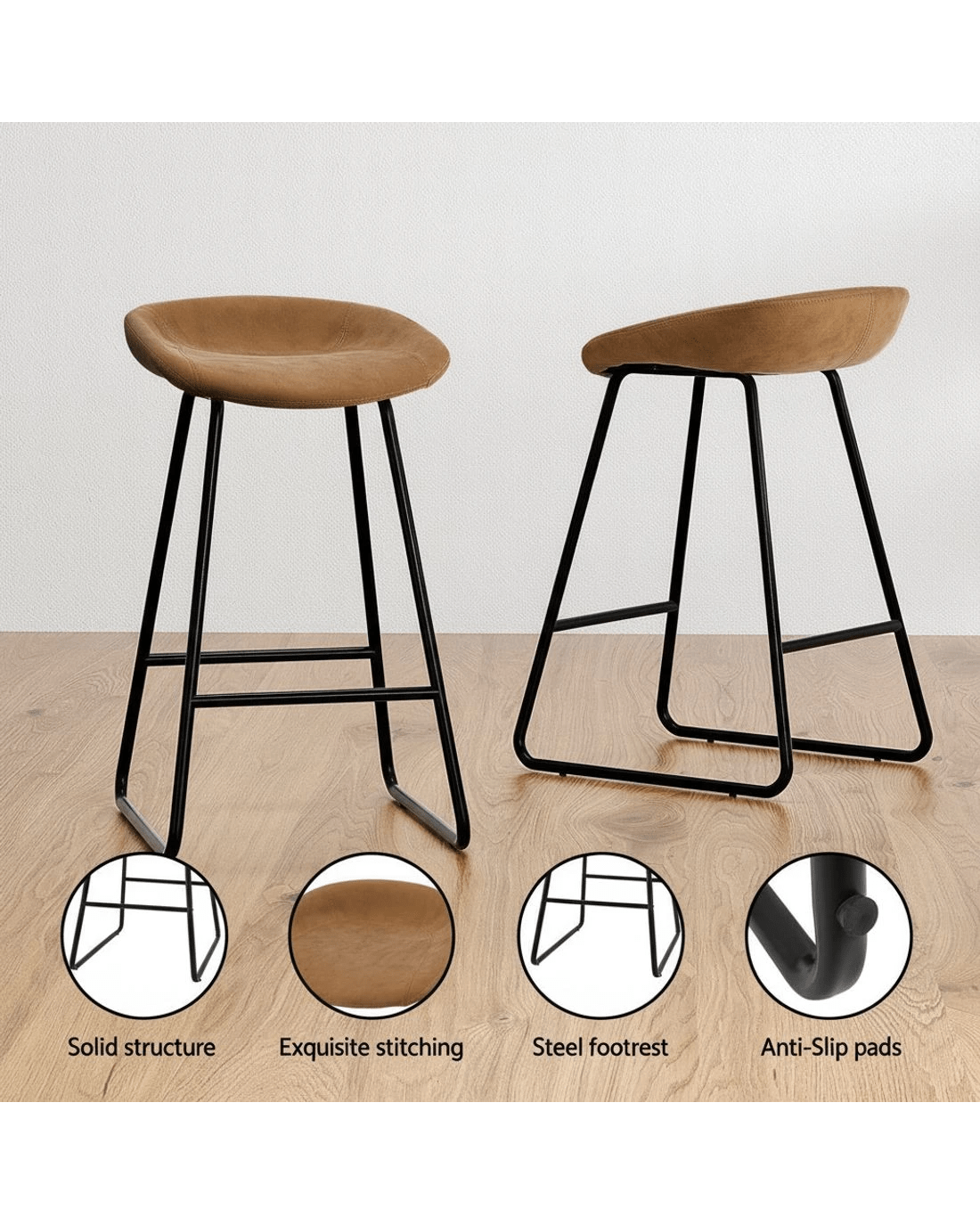 Sold by Aisle SixArtiss 4x Bar Stools Kitchen Dining Chairs Counter Stool PU Leather Metal - Brown