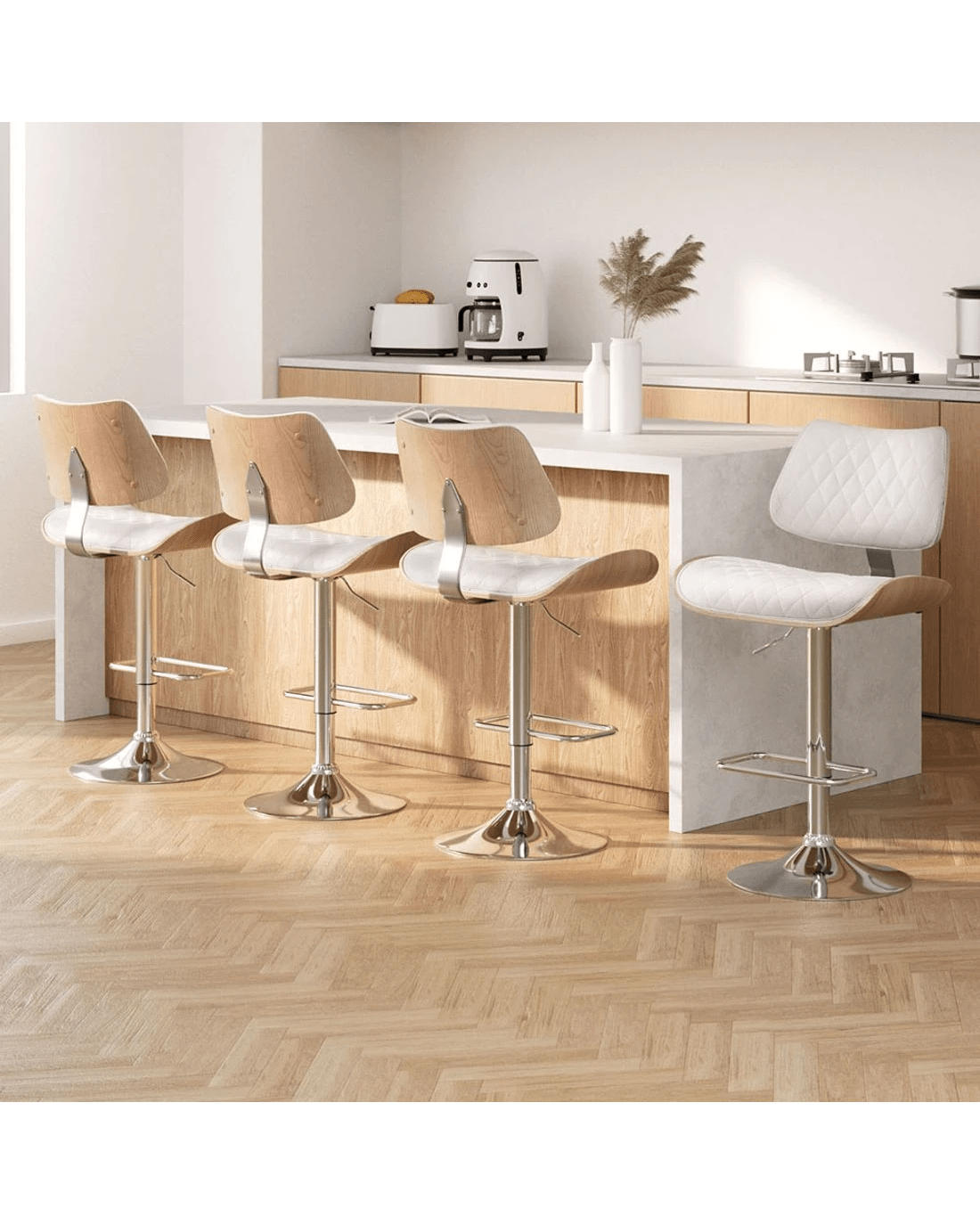 Discover the Artiss Quilla Bar Stools, where comfort meets sophistication. These stools feature a padded seat upholstered in premium PU leather, complemented by a curved bentwood seat with a striking wood grain finish. Enjoy full mobility with a 360-degree swivel seat and adjustable height courtesy of an SGS-tested gas lift lever, all while protecting your floors with a discreet floor protector under the base.