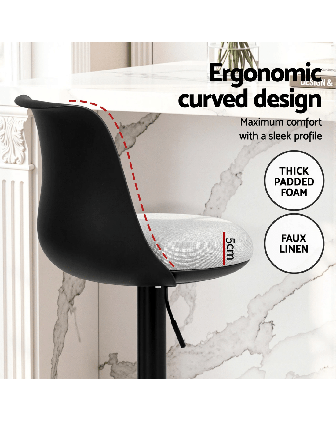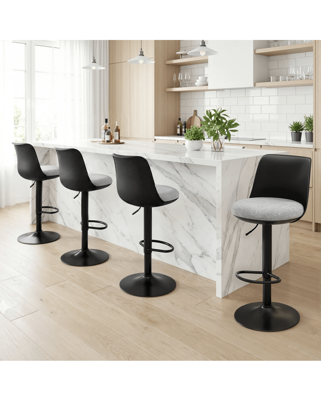 Artiss 4x Bar Stools Kitchen Swivel Gas Lift Counter Dining Chair Curved - Black