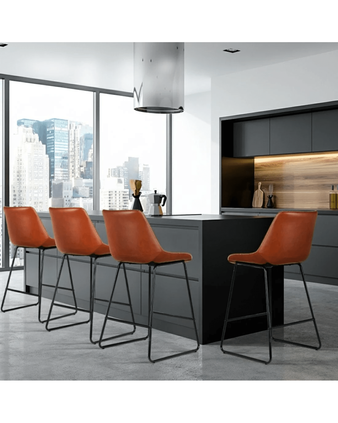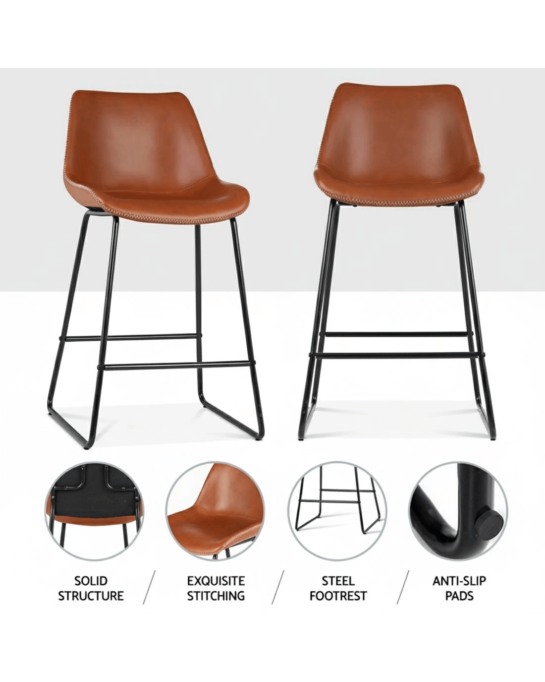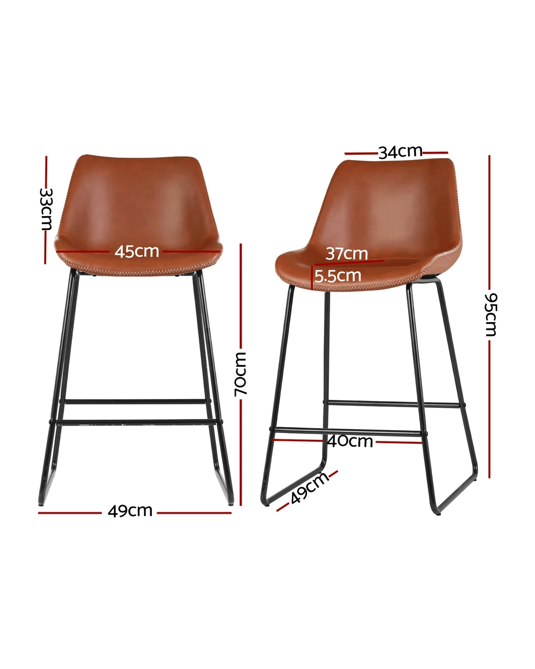 Sold by Aisle SixArtiss 4x Bar Stools Leather Padded Metal Legs - Brown