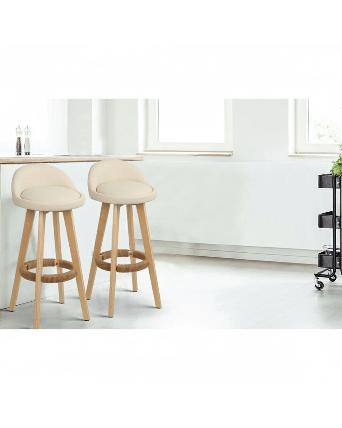 Sold by Aisle SixArtiss 4x Bar Stools Padded Leather Wooden - Beige