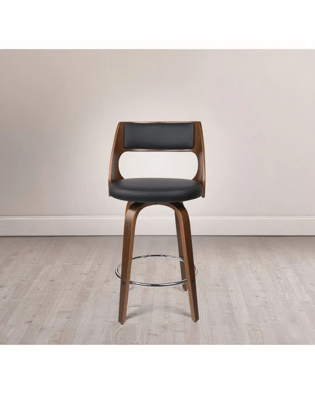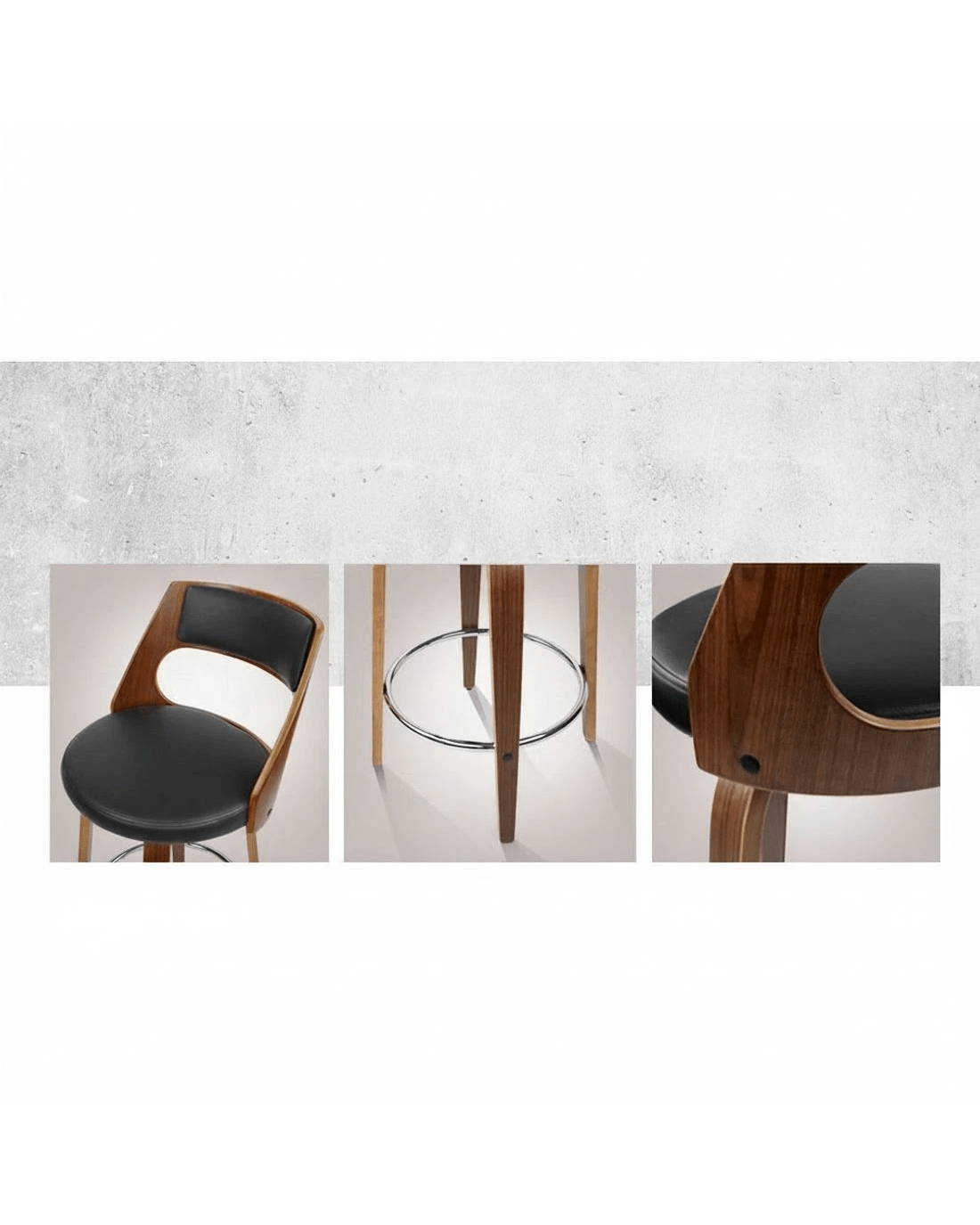 Wood, metal and leather in total harmony. Such is the eclectic design of our Bentwood Bar Stool that stands out from other mundane offerings. Meticulously crafted with solid wood, the bar stool features a generous puckered faux leather integrated seat and backrest that feel comfortably smooth and look absolutely classy. The contoured backrest also provides appreciable support while the anti-slip rubber pads at the bottom of the legs remain firm and steady even with robust use. Not least, the chrome footrest rectangle lets you perch in style, feet up. For home, office, bar or cafe, the Bentwood Bar Stool is a masterpiece of creative flair in more ways than one. Get yours today