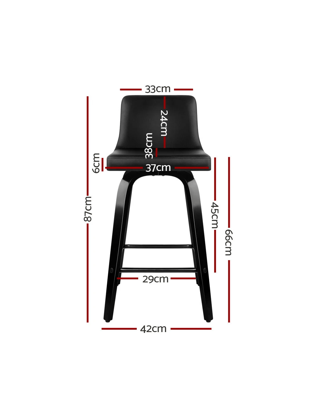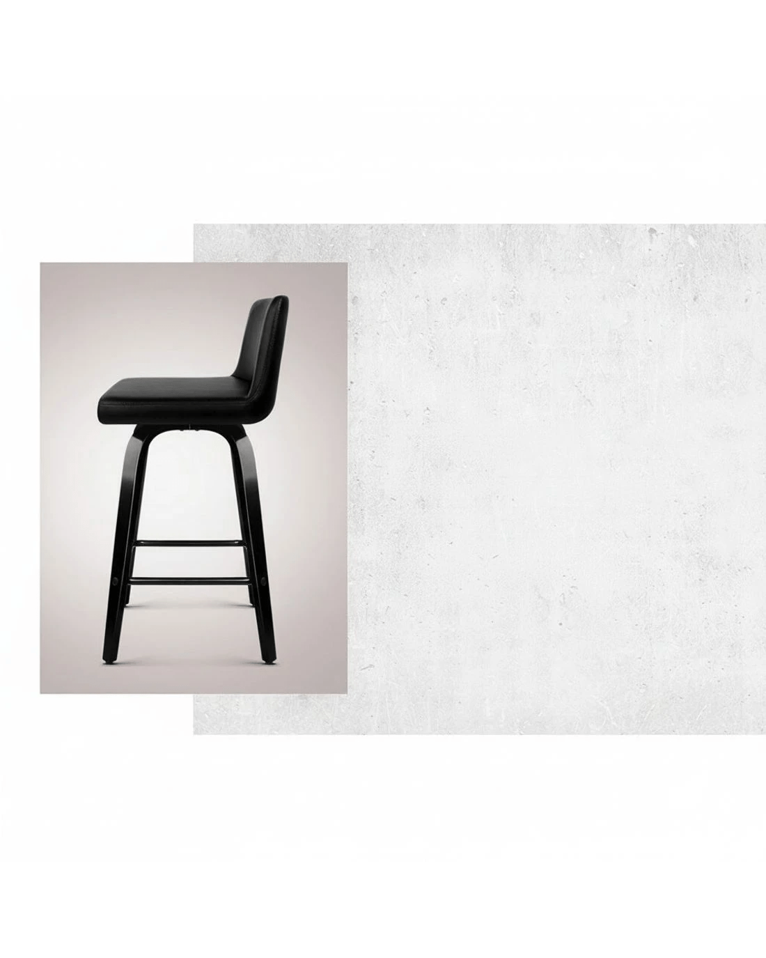 Meticulously crafted with solid plywood in a chic black finish for the frame, the Bentwood Bar Stool features a generously padded faux leather seat that swivels 3600 and a wide backrest that feels comfortably smooth and looks absolutely classy. The mid-height backrest also provides appreciable support while the anti-slip rubber pads at the bottom of the legs remain firm and steady even with robust use. Not least, the powder-coated steel footrest lets you perch in style, feet up.