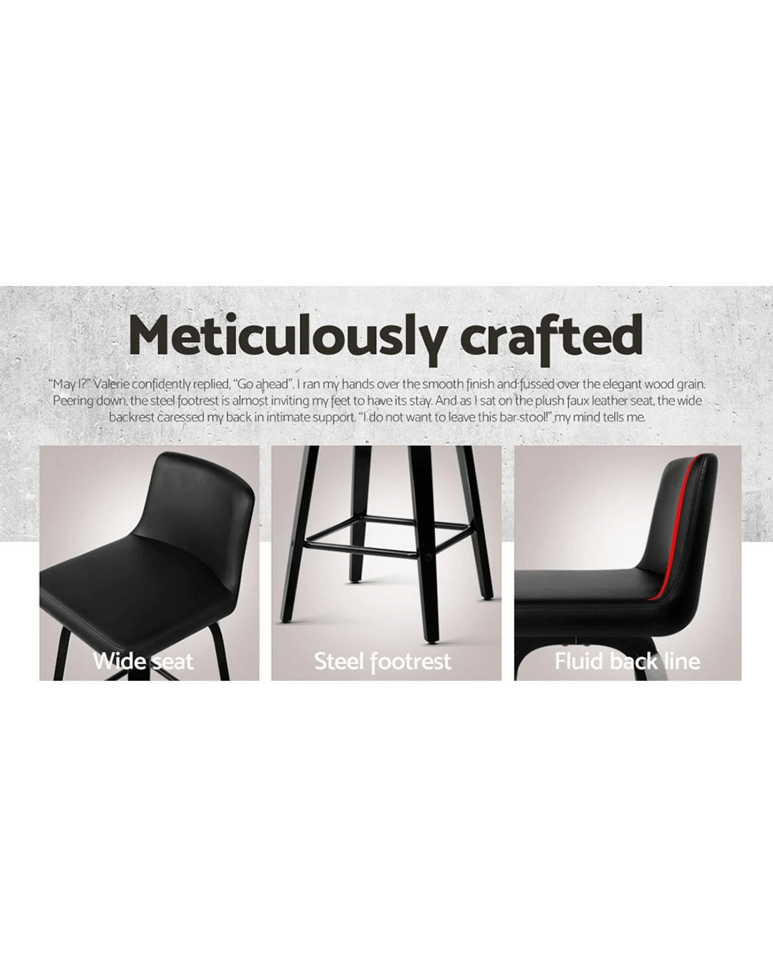 Wood, metal and deluxe PU leather in total harmony. Such is the eclectic design of our Felipe Bar Stool that stands out from other mundane offerings.