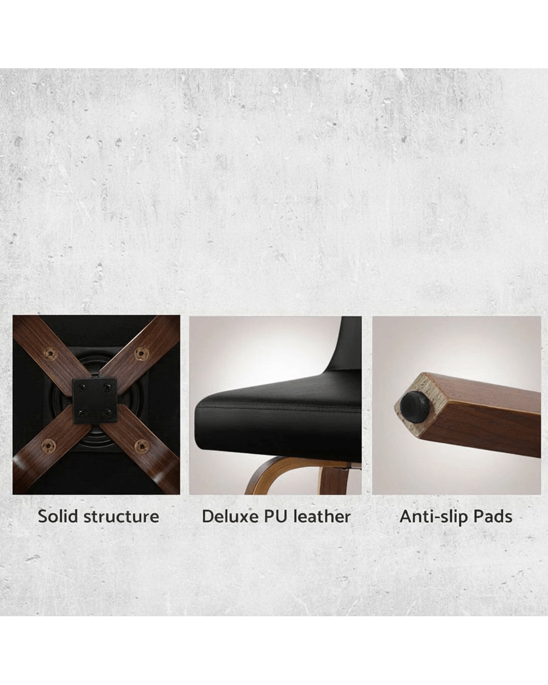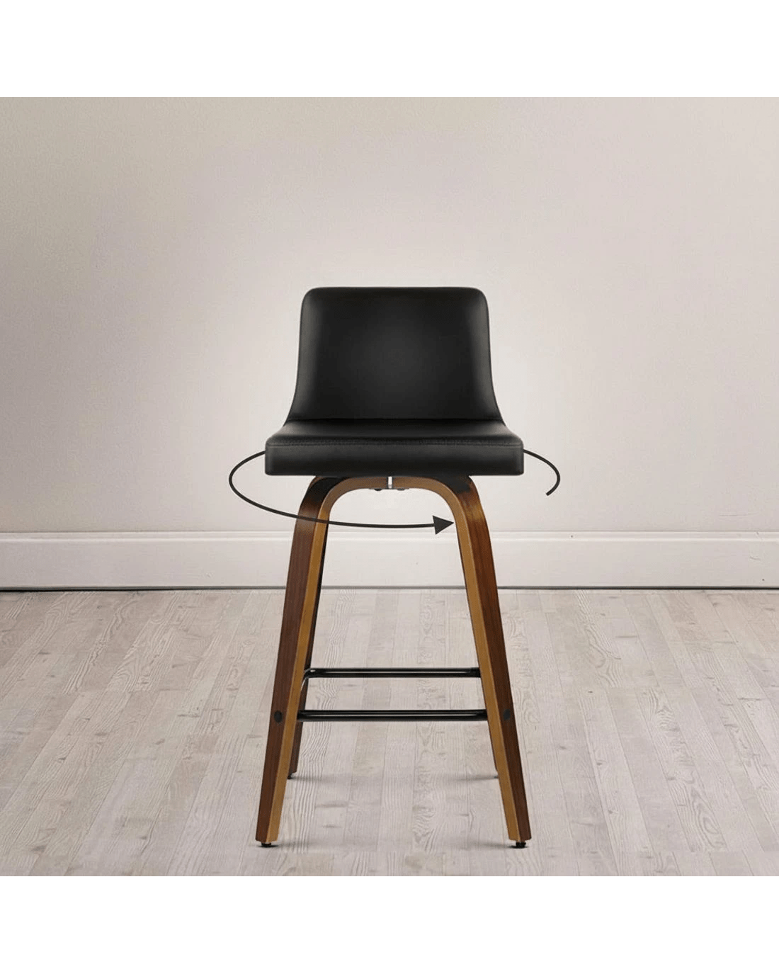 Meticulously crafted with solid plywood in a chic black finish for the frame, the Bentwood Bar Stool features a generously padded faux leather seat that swivels 360° and a wide backrest that feels comfortably smooth and looks absolutely classy. The mid-height backrest also provides appreciable support while the anti-slip rubber pads at the bottom of the legs remain firm and steady even with robust use. Not least, the powder-coated steel footrest lets you perch in style, feet up.