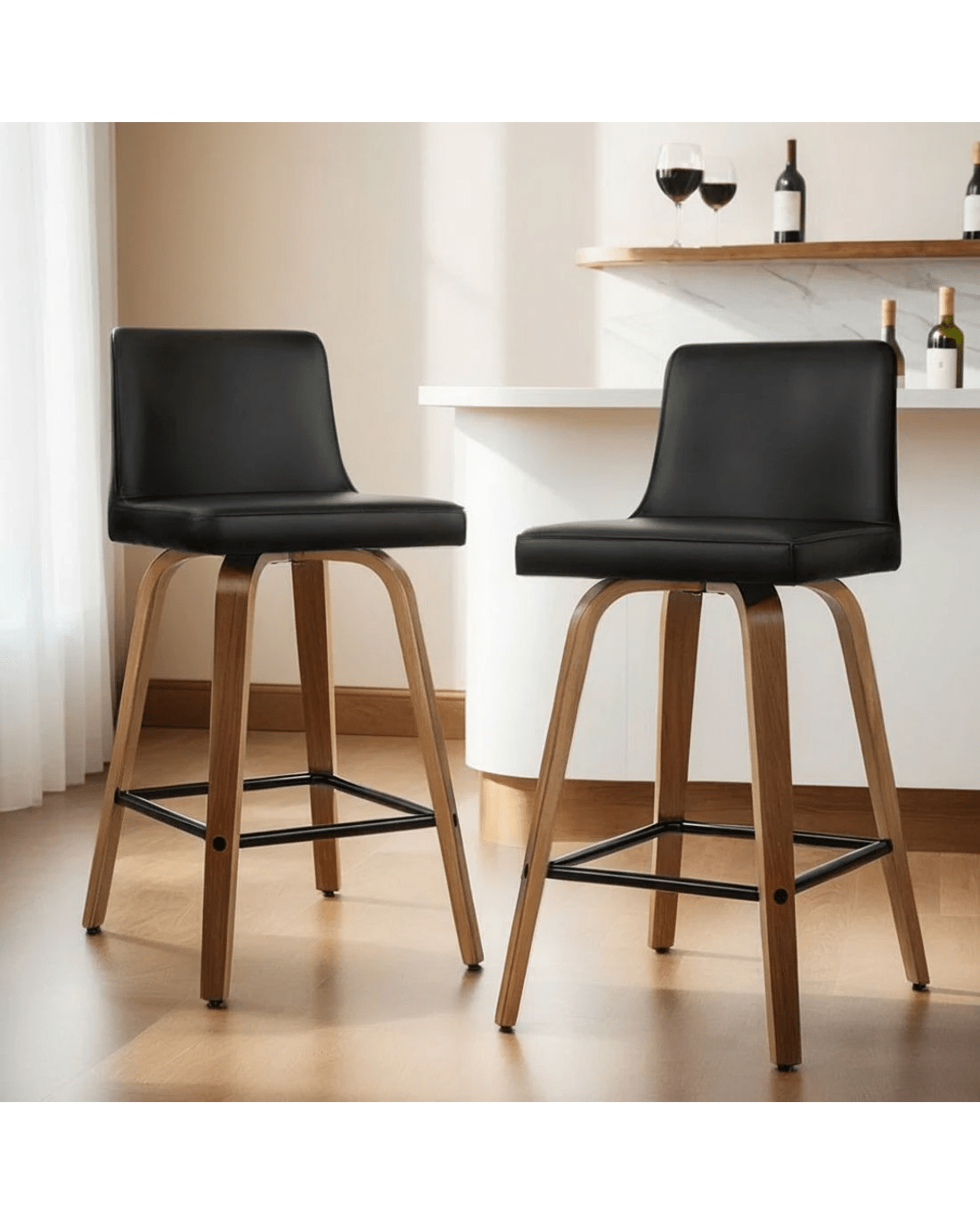 Sold by Aisle SixArtiss 4x Bar Stools Swivel Leather Padded Wooden - Black