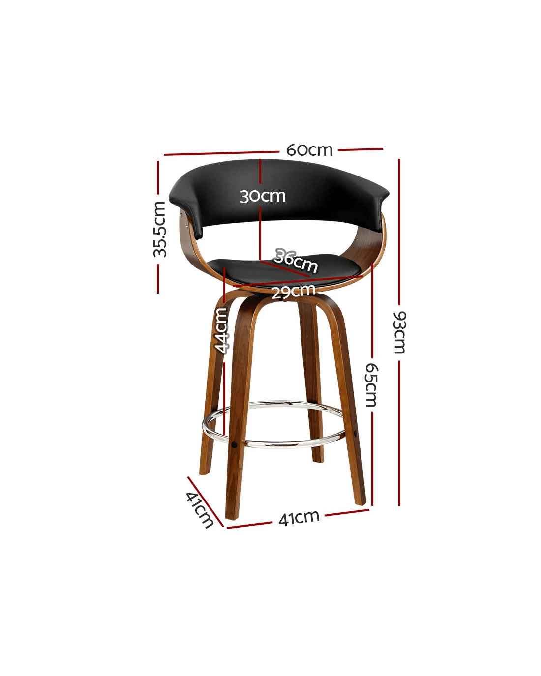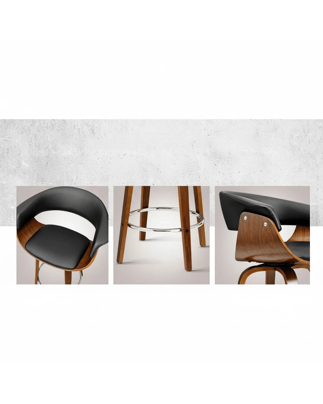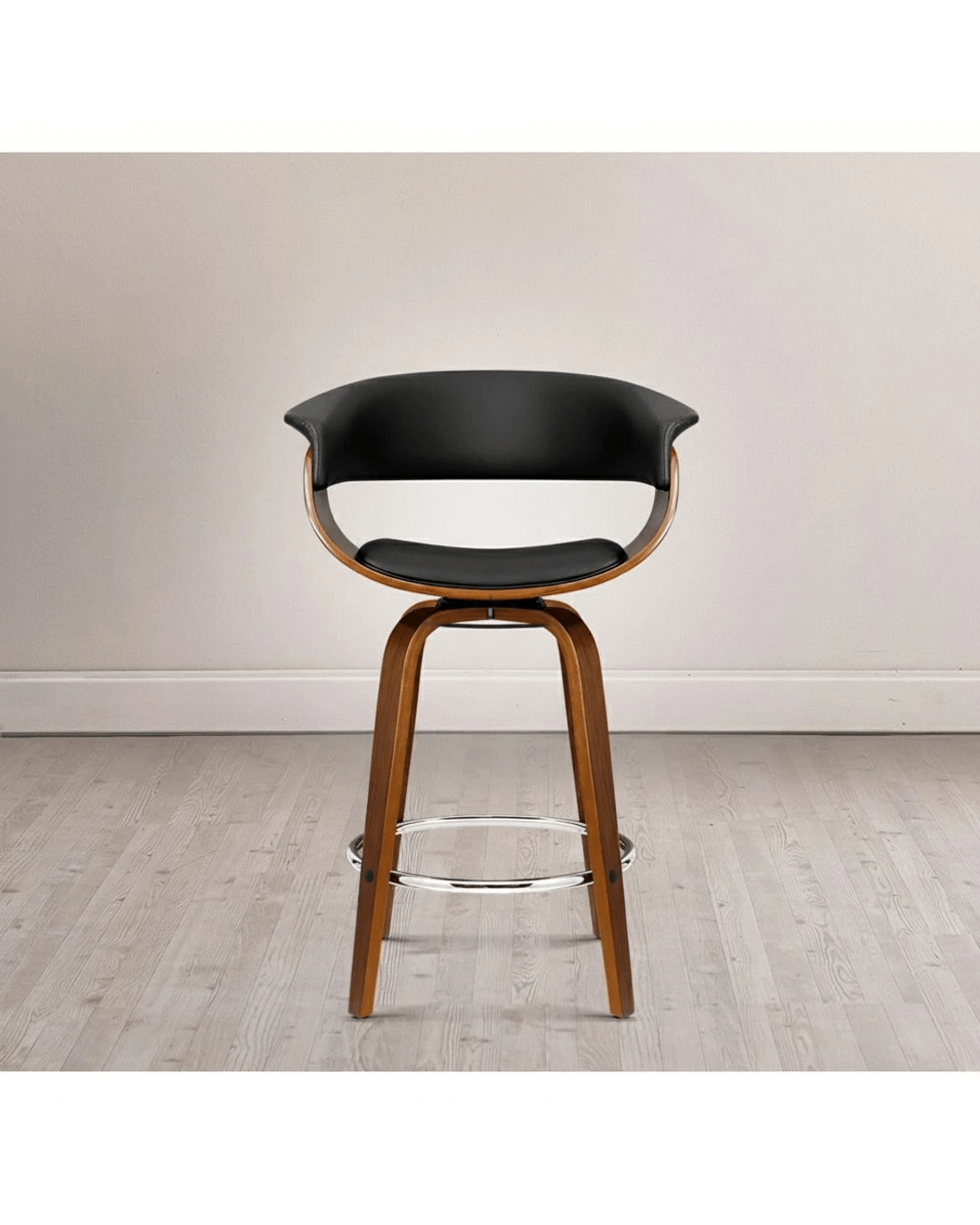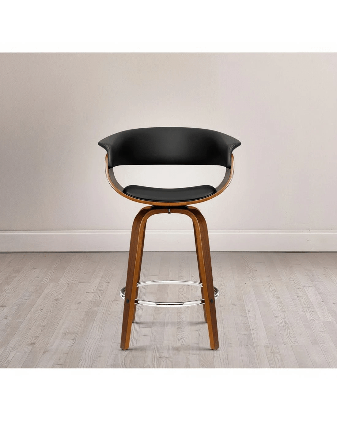 Wood, metal and deluxe PU leather in total harmony. Such is the eclectic design of our Artiss Cassius Bar Stool that stands out from other mundane offerings. Meticulously crafted with solid plywood in a stunning walnut finish for the frame, the bar stool features a thick faux leather seat that rotates 3600 and a similarly padded backrest that feels comfortably smooth and looks absolutely classy. The mid-height backrest also provides appreciable support while the anti-slip floor protectors at the bottom of the legs ensure a hassle-free use with no worries about your flooring even with robust use. Not least, the chrome steel footrest lets you perch in style, feet up.