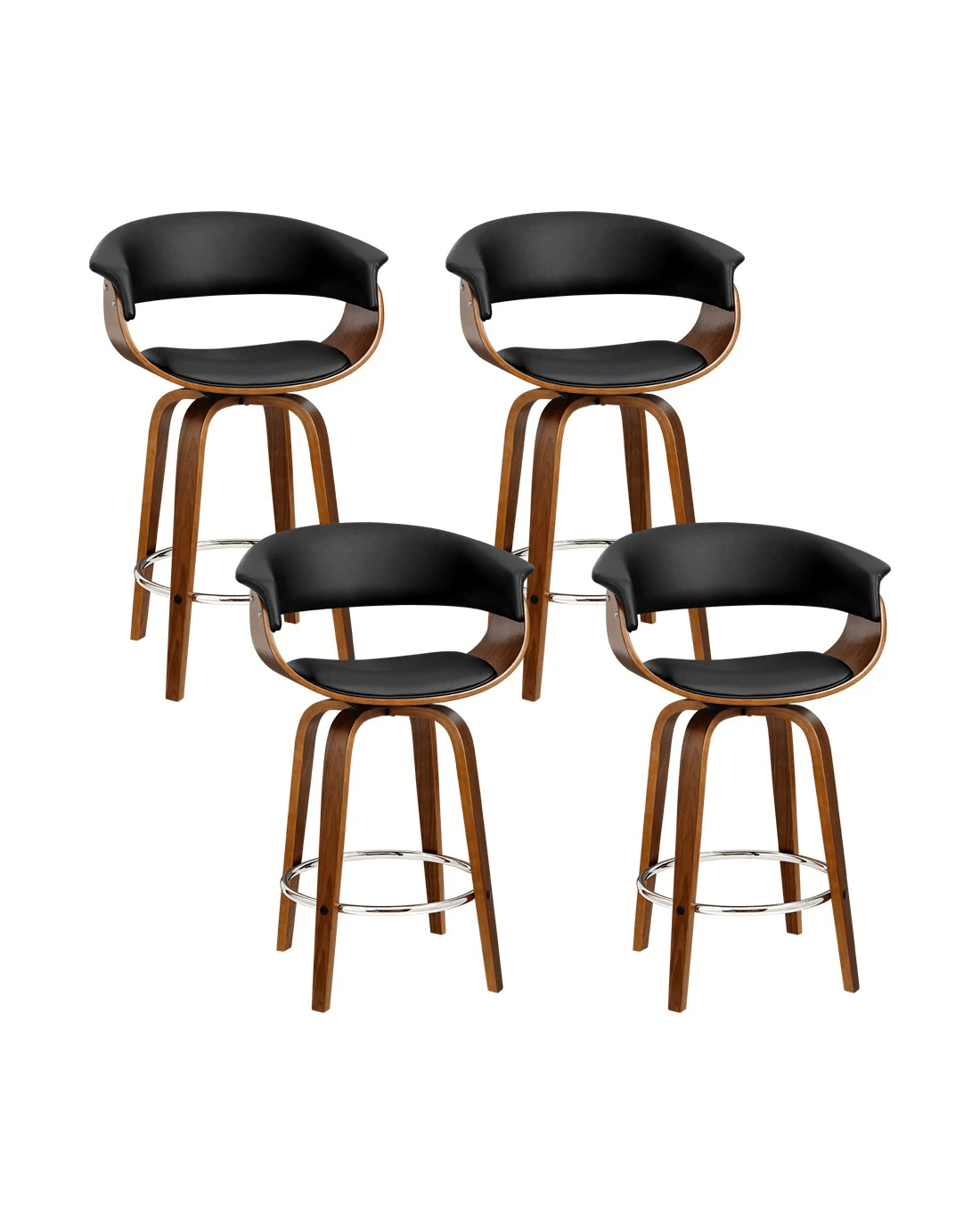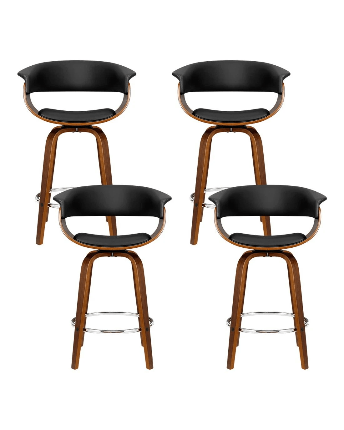 Sold by Aisle SixArtiss 4x Bar Stools Swivel PU Seat Wooden - Black
