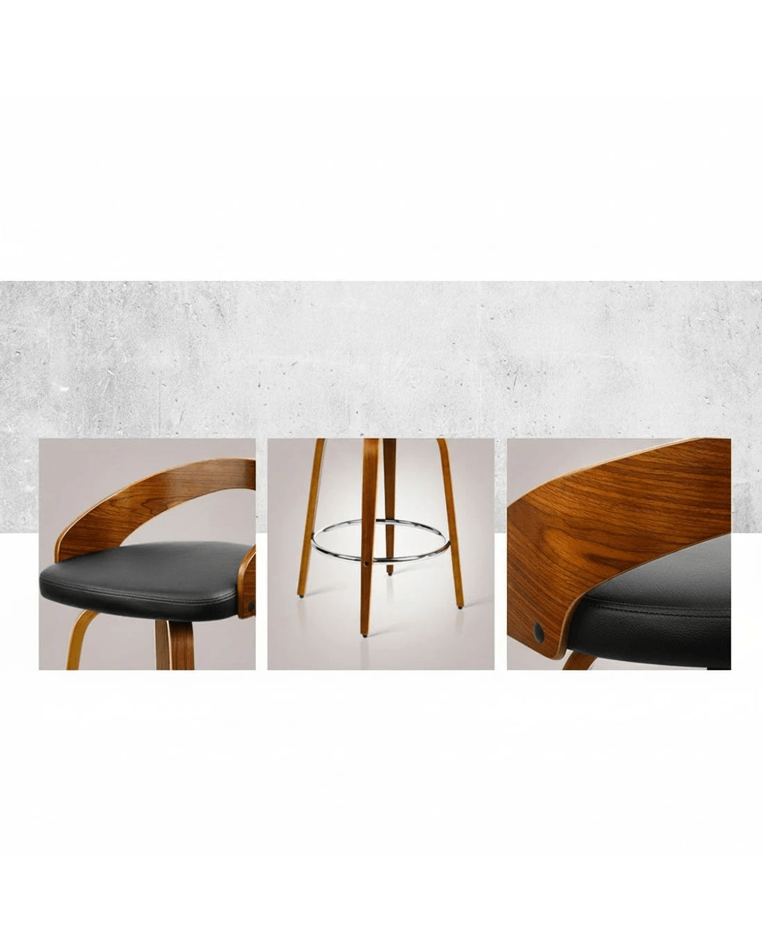 Walnut Wood | 360 Degree Swivel Seat | Chrome Footrest