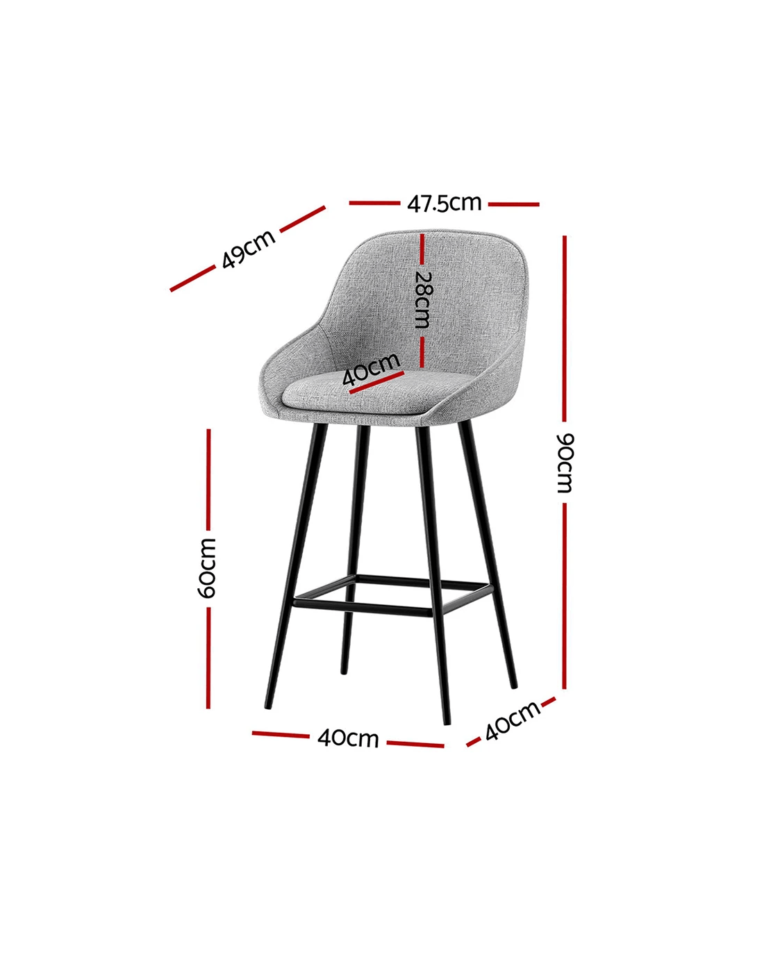 Artiss 4x Bar Stools Upholste Stool Counter Seat Kitchen Dining Chairs - Grey