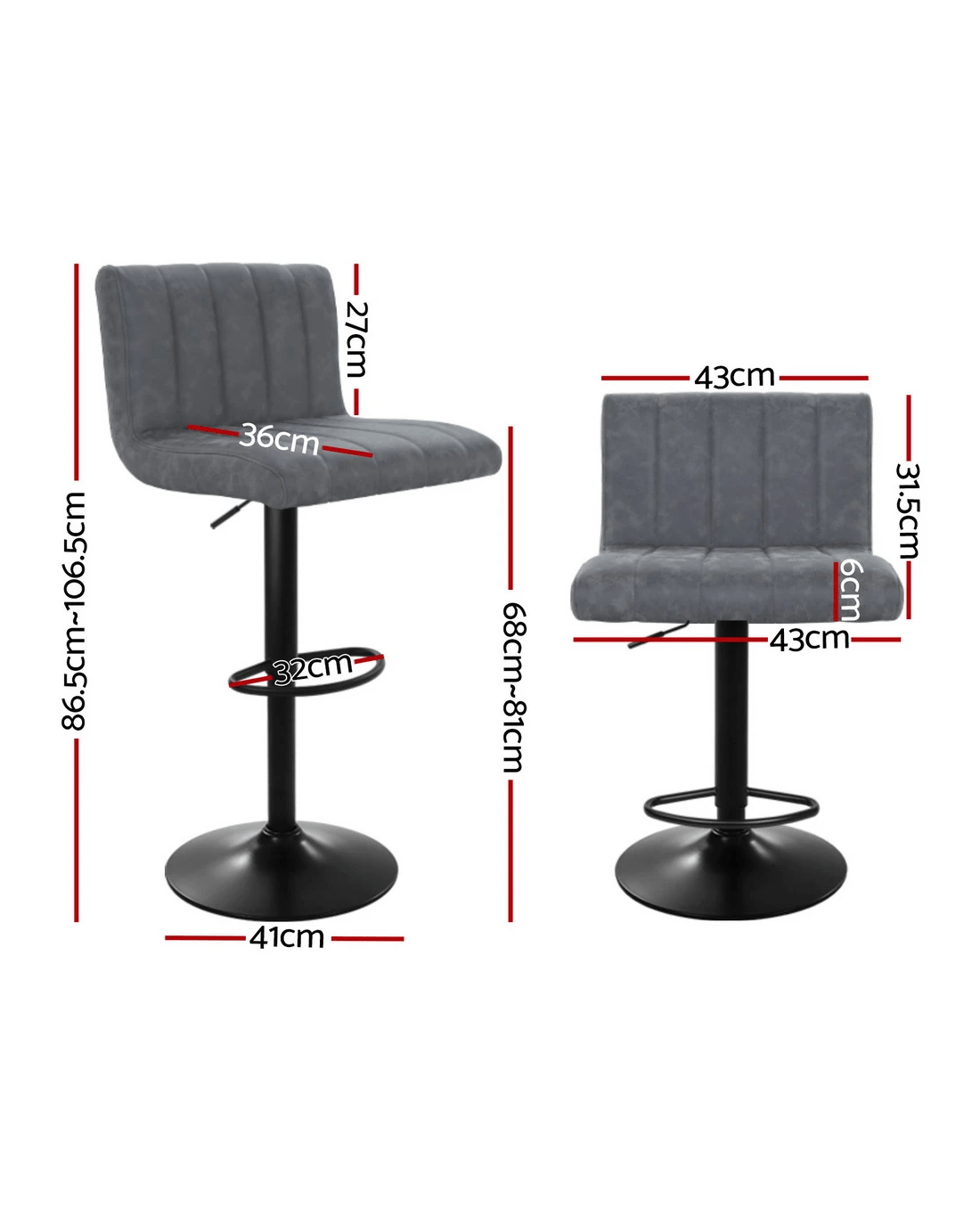 Sold by Aisle SixArtiss 4x Bar Stools Vintage Leather Gas Lift - Grey