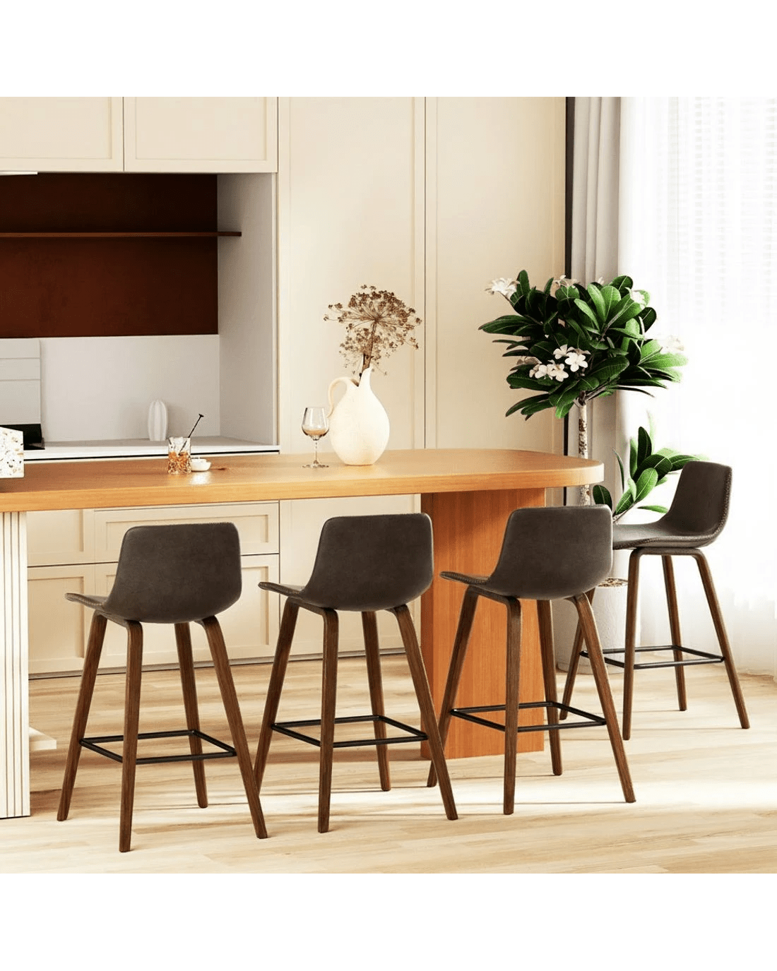 Sold by Aisle SixArtiss 4x Bar Stools Vintage Leather Wooden - Brown