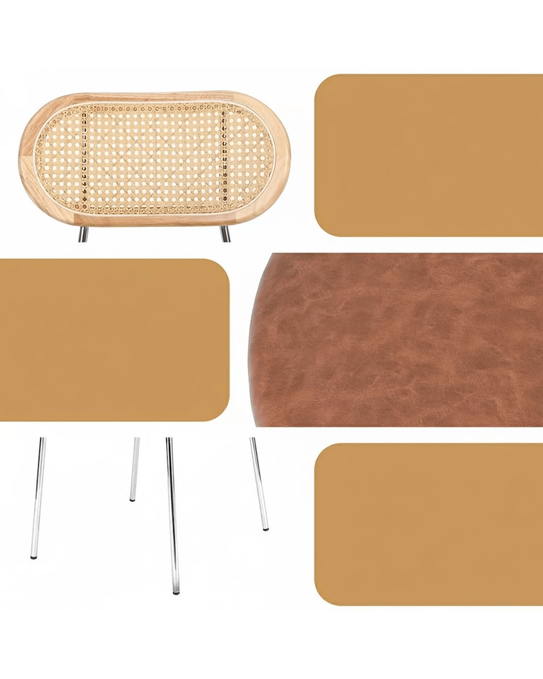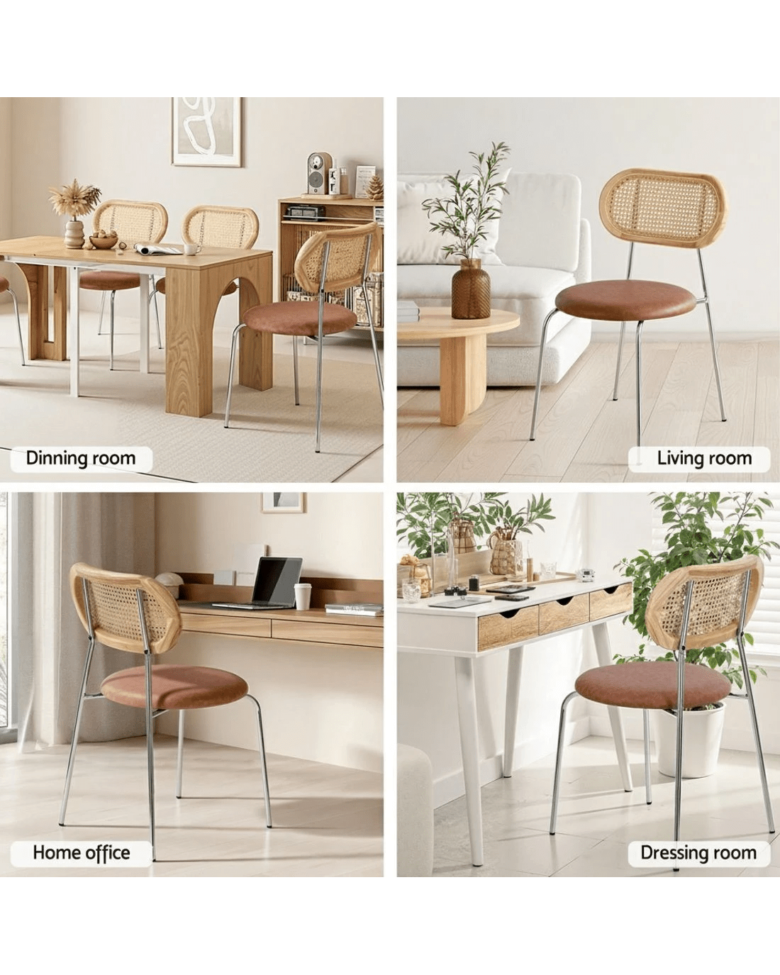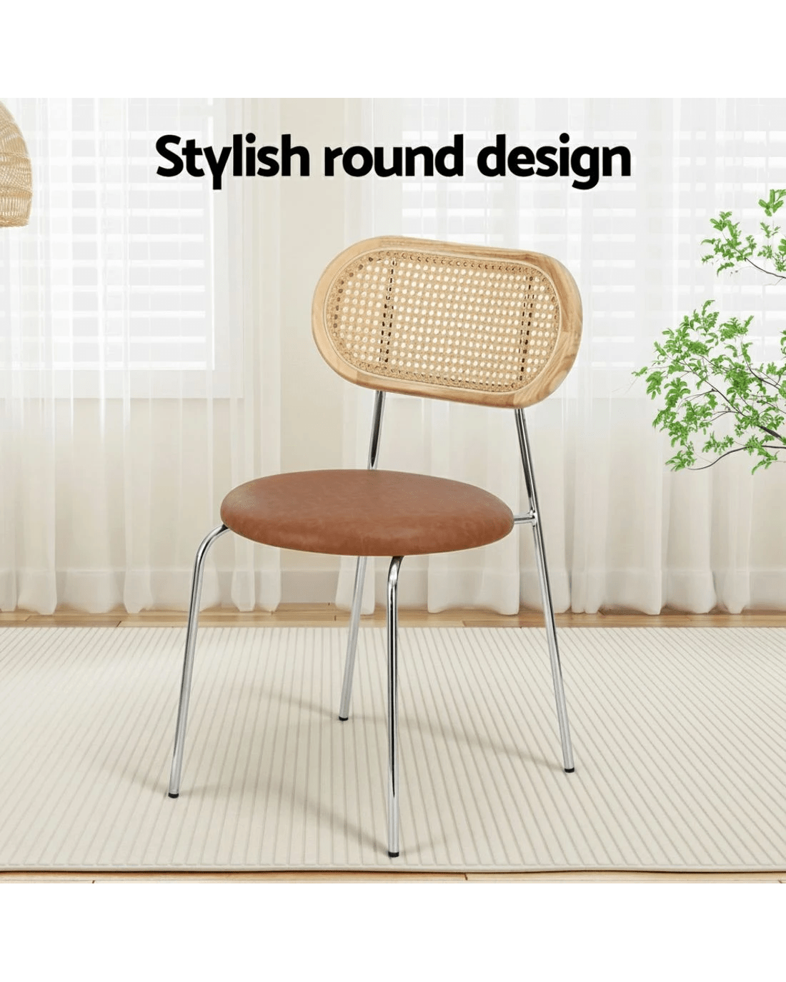 Built to be durable and stylish, they stand on sturdy metal legs, offering reliable stability and a modern contrast to the natural elements. Their beautiful brown colour and versatile style make them suitable for the kitchen, cafe, or as stylish accent chairs in your home office.