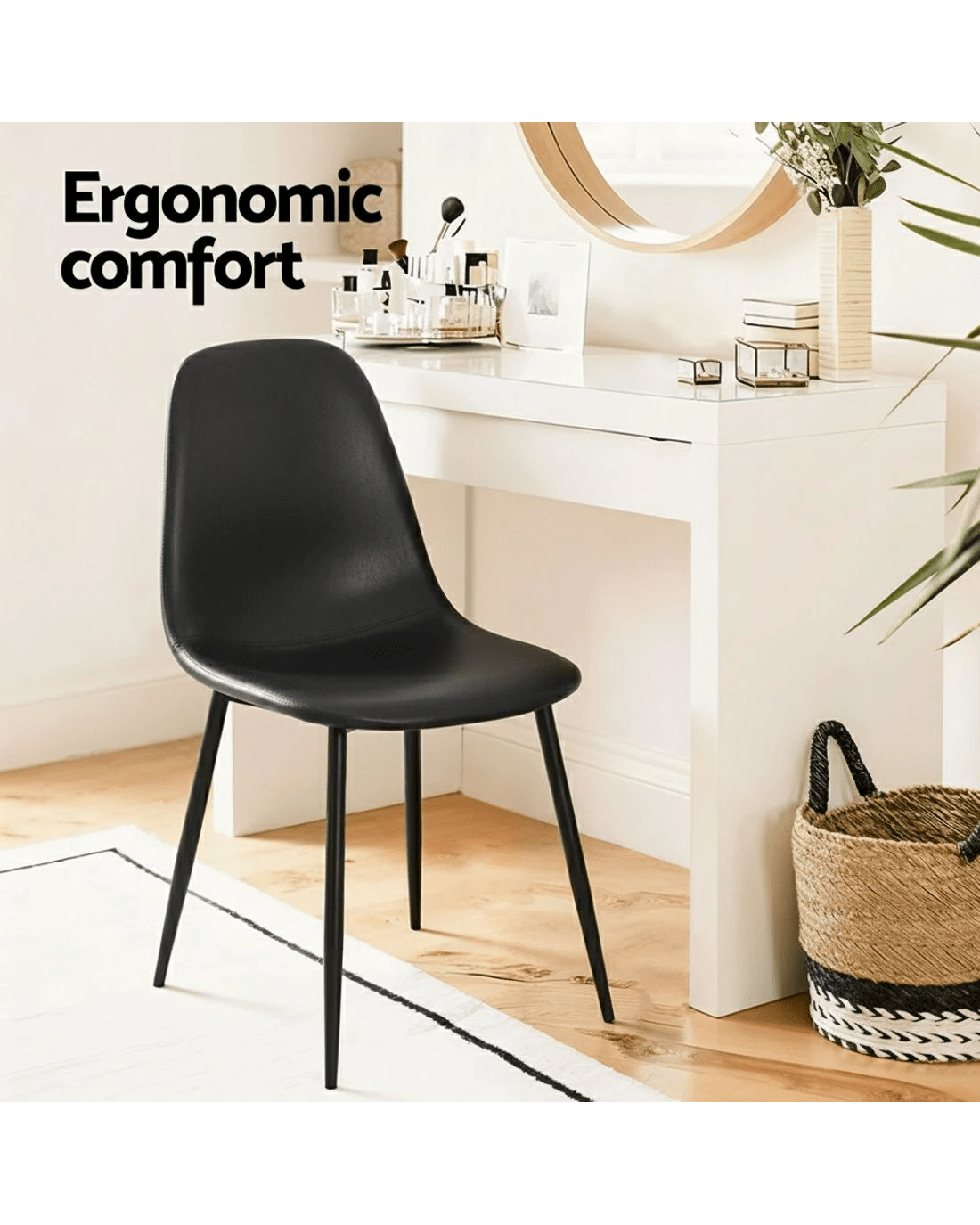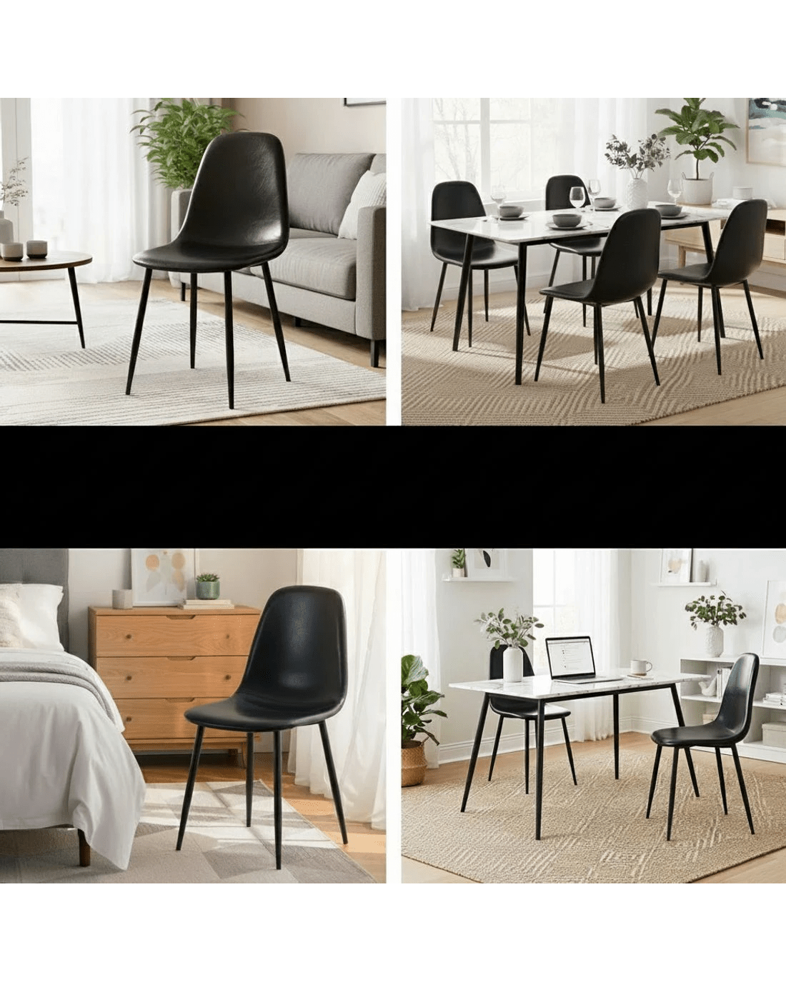 Built for stability, the chairs stand on sturdy metal legs, finished in black, providing reliable support and a modern industrial touch. Their simple yet elegant black finish makes them wonderfully versatile, blending seamlessly with various interior designs, from minimalist to industrial.
