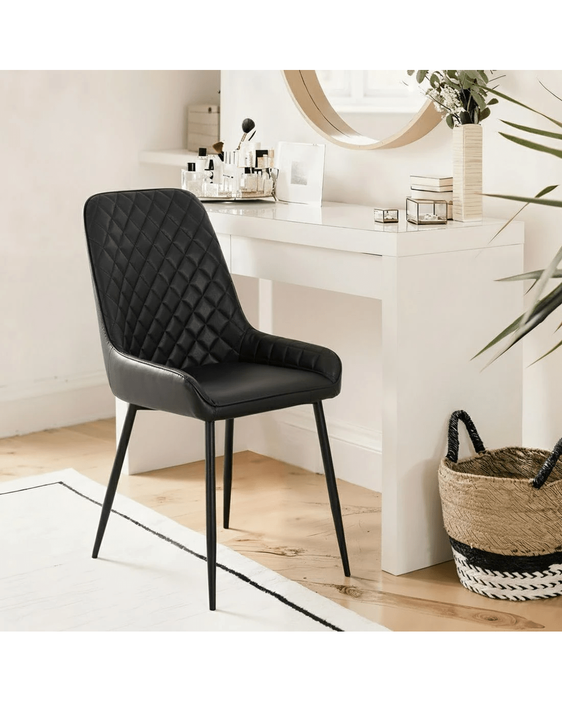 The seats are upholstered in high-quality PU leather and feature an eye-catching diamond tufted design that elevates the look. The ergonomic, curved support ensures maximum comfort, complemented by a generously padded seat for long hours of use.