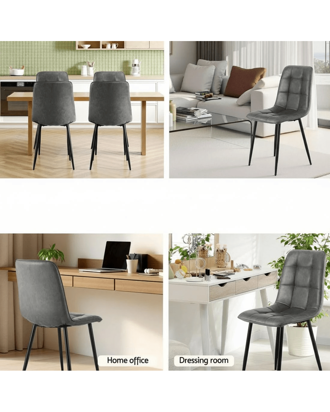 Artiss 4x Dining Chairs Retro PU Leather Kitchen Lounge Cafe Accent Chair - Grey