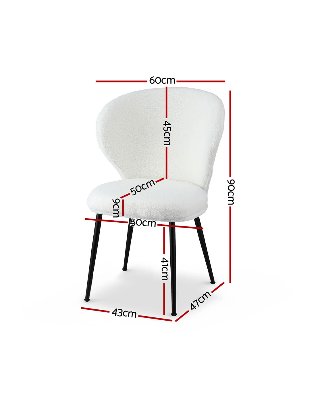 Enhance your living space with Artiss contemporary accent chair featuring premium sherpa fabric upholstery. The ergonomic curved backrest with shell design promotes airflow, paired with high-density foam cushions for lasting comfort. Sturdy powder-coated steel legs with non-slip protectors ensure stability on various floor types. Ideal for lounges, reading nooks or bedroom seating, this versatile chair supports up to 150kg. Modern white colour complements most décors. Simple assembly with included instructions. Spot-clean with damp cloth. *Actual colour may vary slightly between monitor displays.