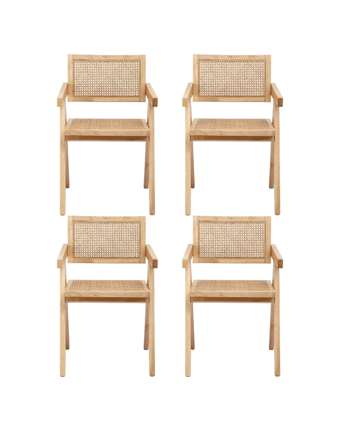 Sold by Aisle SixArtiss 4x Dining Chairs Wooden Rattan Seat Rubber Wood Frame - Natural