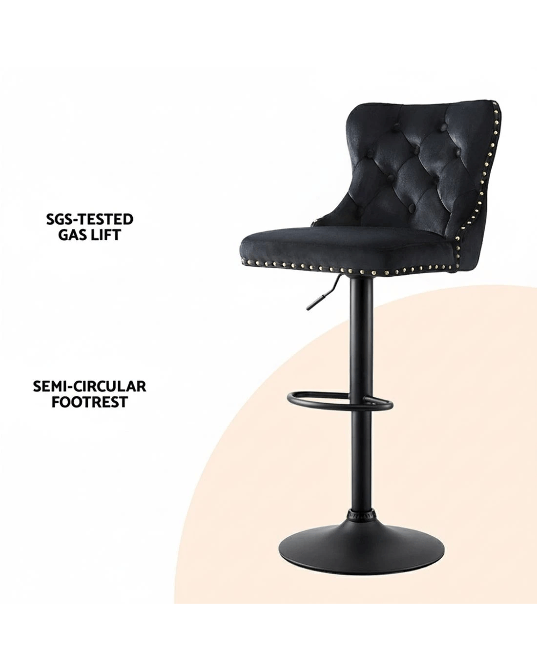 Artiss 4x Velvet Bar Stool Adjustable Height Nailhead Trim Kitchen Counter - Black