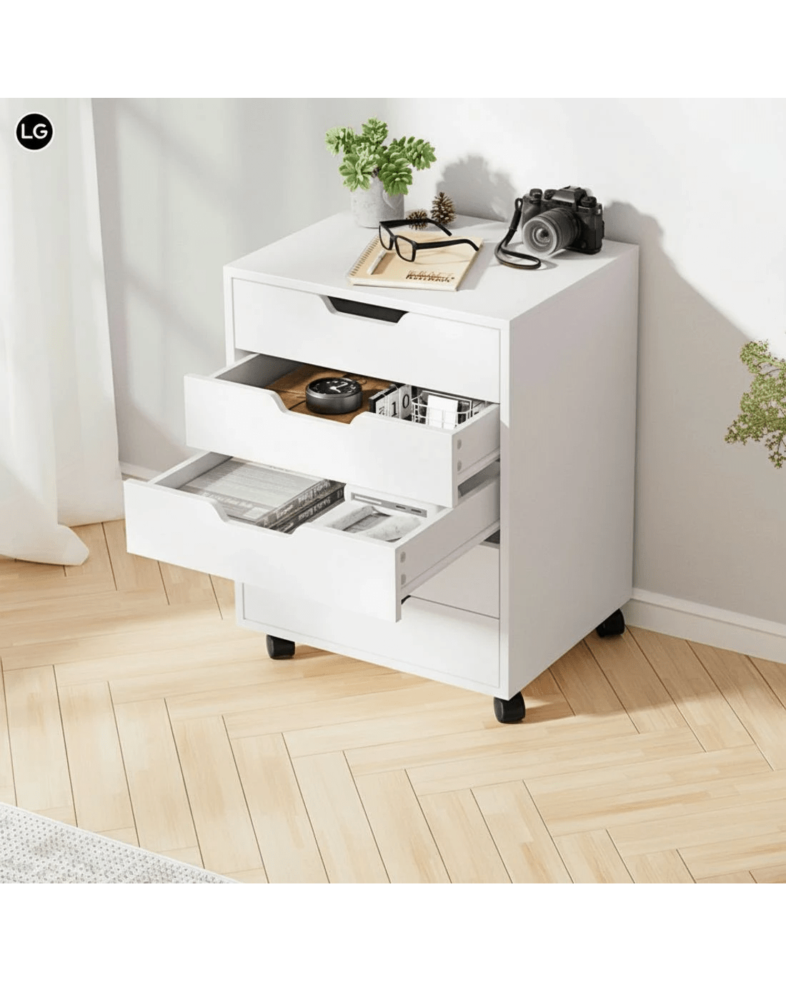 Five large drawers for storage