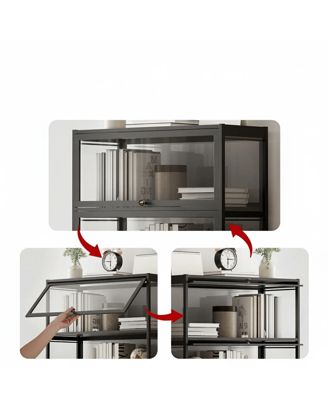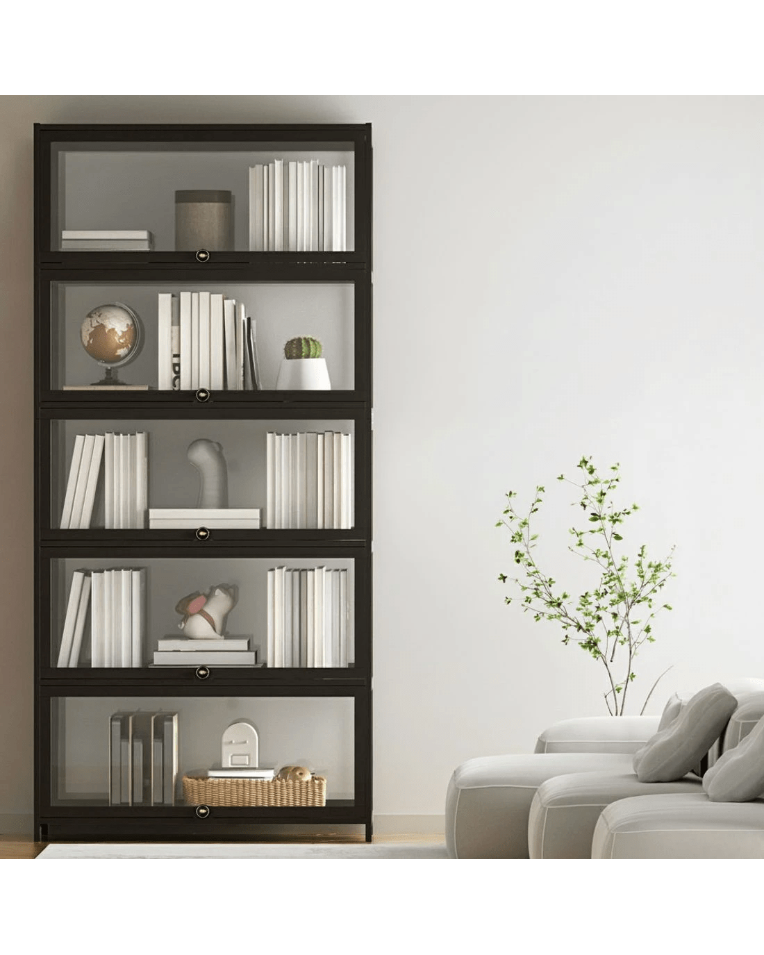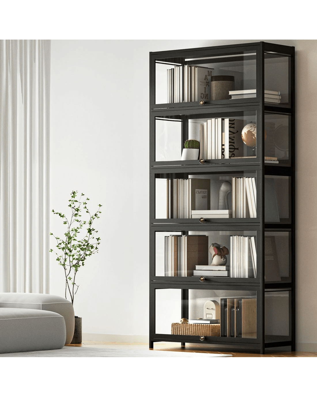 Versatile and functional, the 5-tier Artiss bookshelf has plenty of storage space for your books, CDs, DVDs and anything worth displaying your passion. The transparent appearance of the display cabinet present a better looking and clearer display of your items, while the clear panel seamless blend with the surrounding environment adds to its aesthetic appeal.The display cabinet is made of acrylic panel and solid bamboo boards, which ensure the stability of the display cabinet and provide long-time service. The bamboo material won't be affected by damp or rainy days.The flip-top door is easy to open and close, push-in and hoverable design will not occupy our space when it is opened. The door panel has a magnetic suction function makes it more airtight and dust-proof.