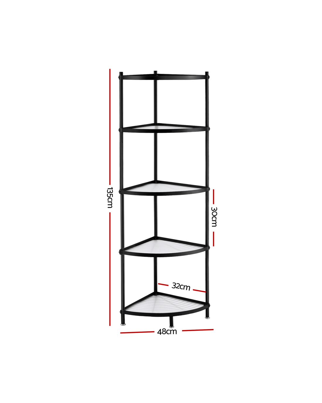 Maximize unused corners with the Artiss 5-Tier Corner Shelf. Featuring a metal frame with wipe-clean PP shelves, this freestanding unit adds versatile storage to kitchens, bathrooms, or balconies. Tool-free assembly requires no expertise. With 15kg per shelf capacity and 90° corner design, it transforms cluttered spaces into organized zones. Ideal for organizing kithcenware, displaying plants, storing pantry goods, or organizing toiletries.