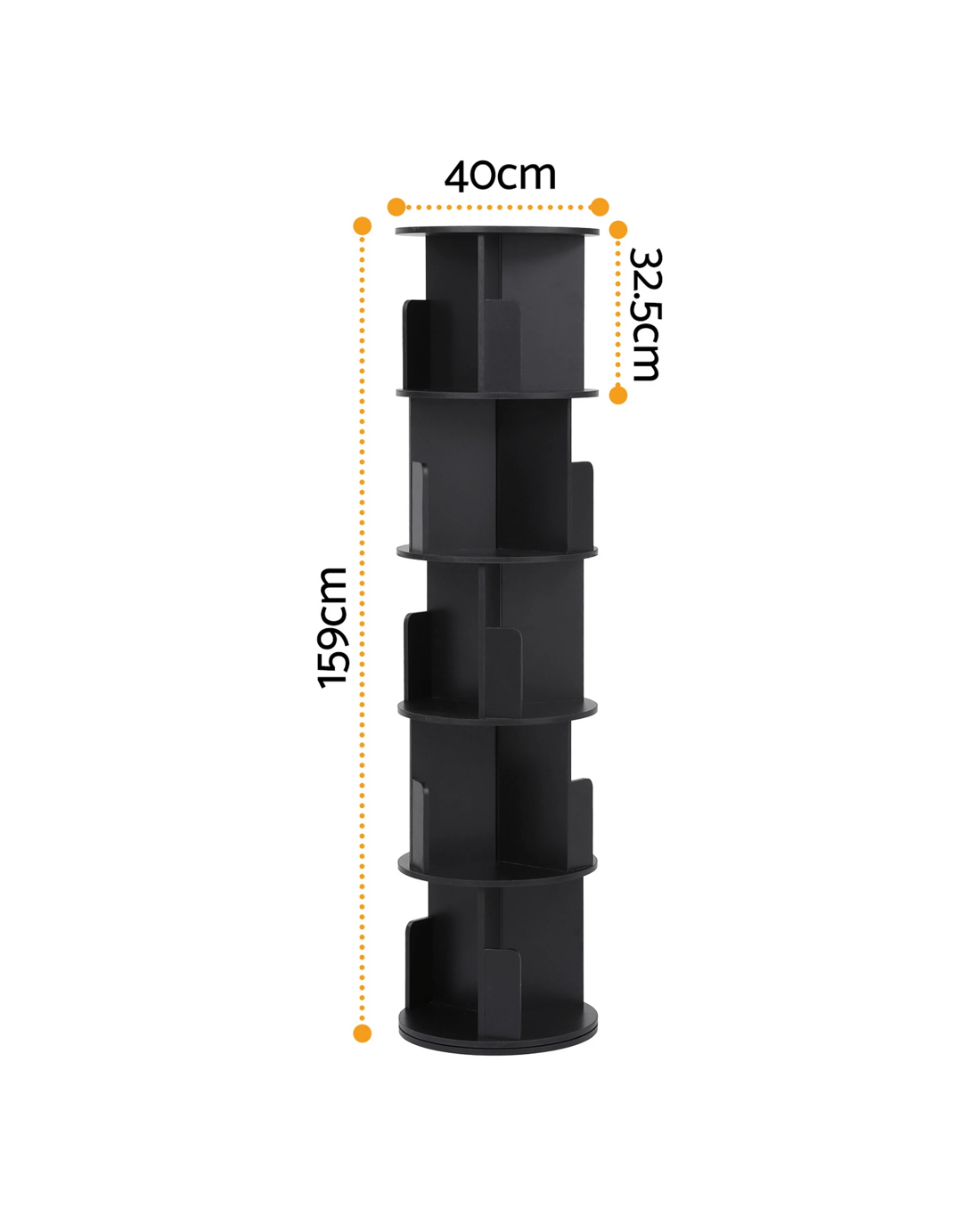 Artiss 5 Tiers Bookshelf Swivel Bookcase Display Shelves Stand Round - Black