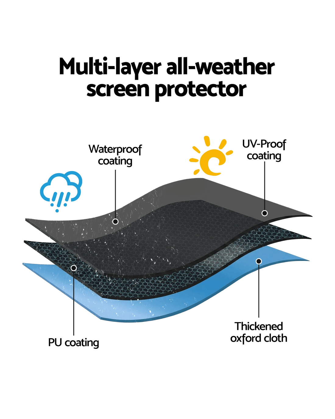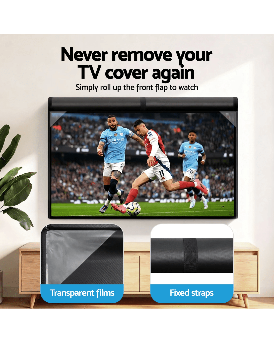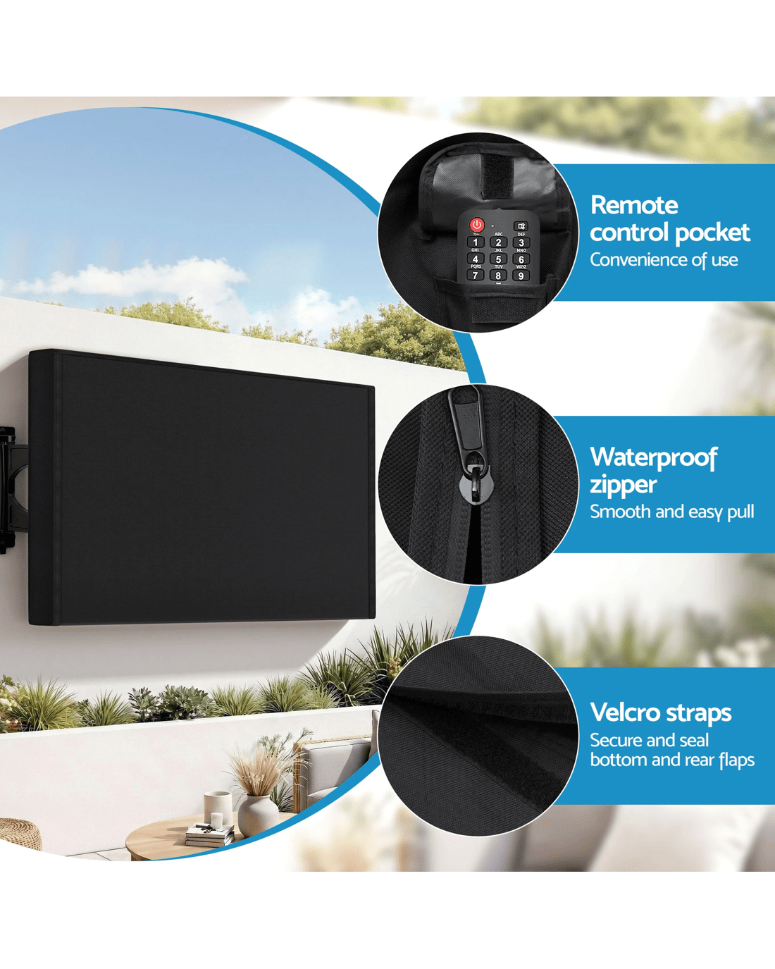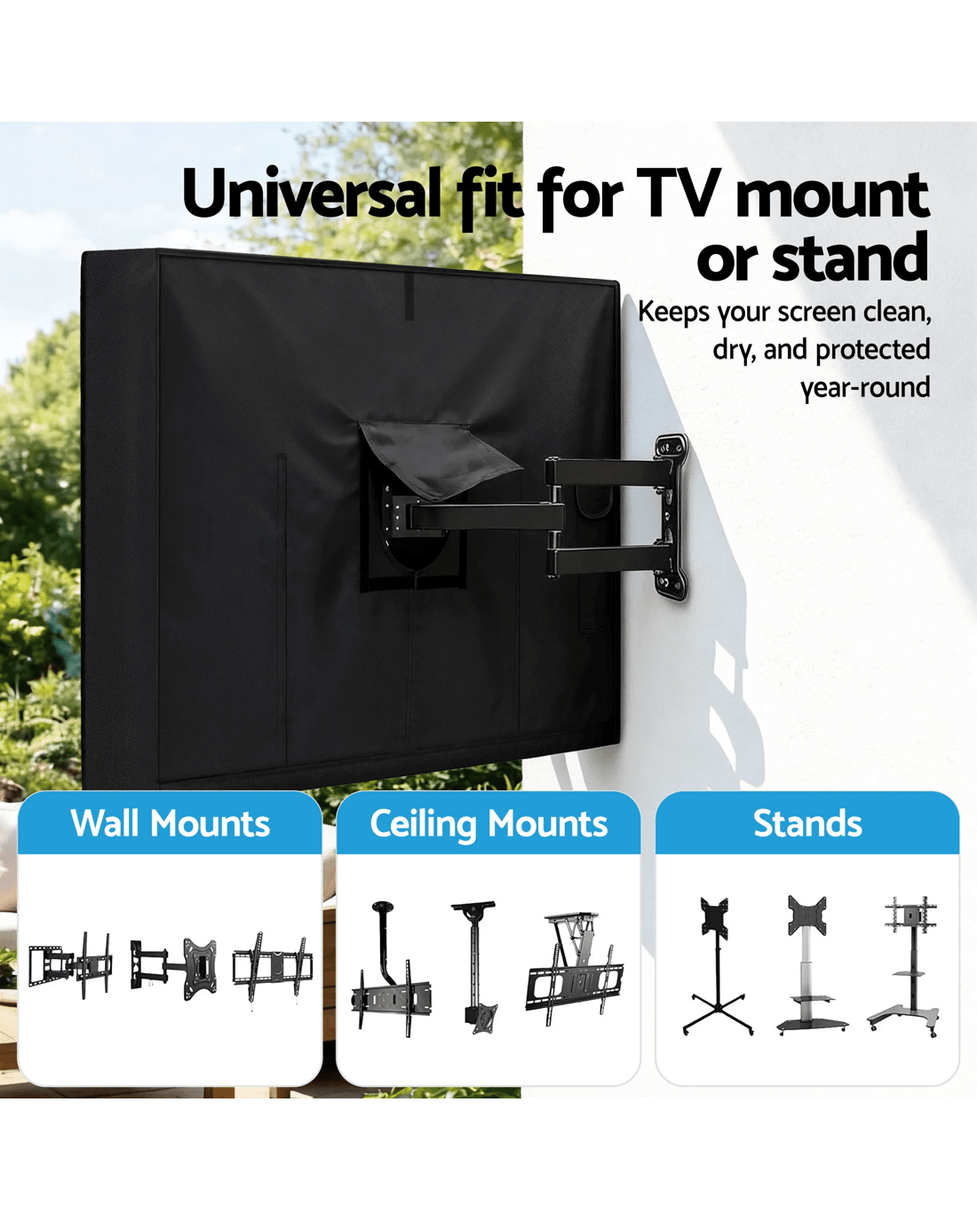 Safeguard your outdoor entertainment setup with the Artiss TV Cover, specifically engineered to provide robust protection for 55 to 58-inch televisions. Crafted from premium heavy-duty 600D Oxford cloth with a specialized waterproof PVC coating, this durable cover acts as a fortress against rain, snow, dust, dirt, and harsh UV rays, ensuring your screen remains pristine and functional in any season. Beyond just superior weatherproofing, the design prioritizes user convenience; featuring a smart half-covered front with easy zipper access, it allows you to flip the front flap and enjoy your favorite shows without the hassle of removing the entire unit. The cover ensures 360-degree full protection with adjustable Velcro straps that create a secure, custom fit around almost any wide mount or stand setup, effectively sealing out moisture and preventing scratches. Complete with a dedicated weather-resistant rear pocket for safe remote control storage, this versatile cover is the essential accessory for extending the lifespan of your television, whether placed on a patio, deck, or by the pool.