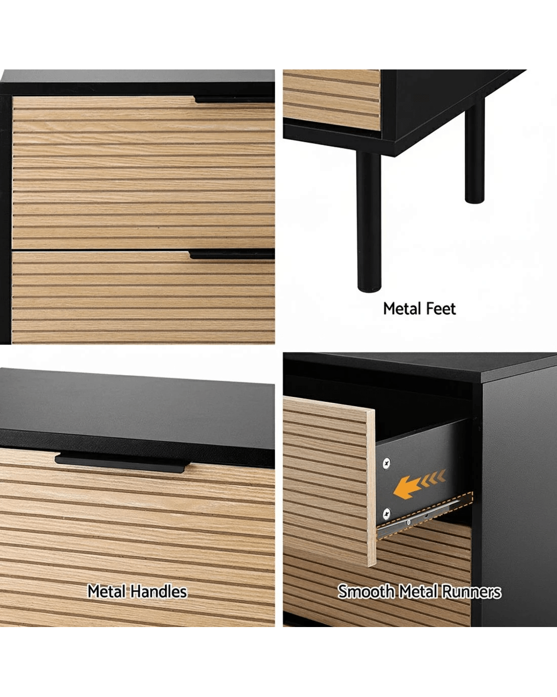 Sleek metal handles & legs