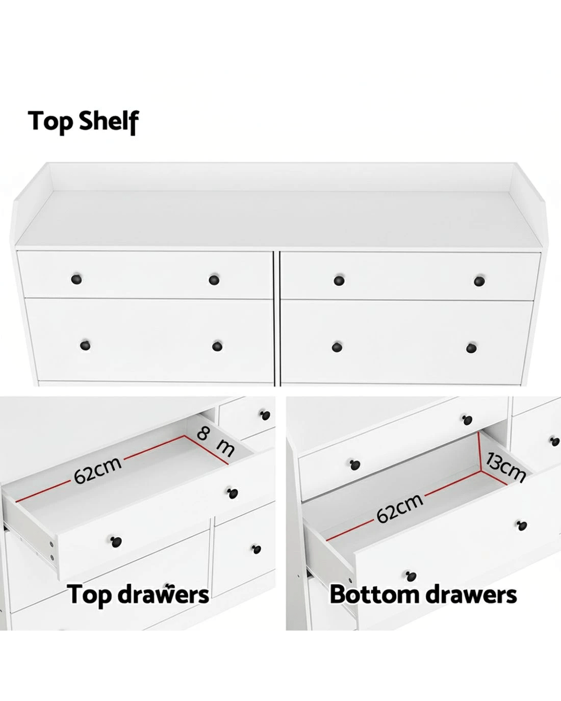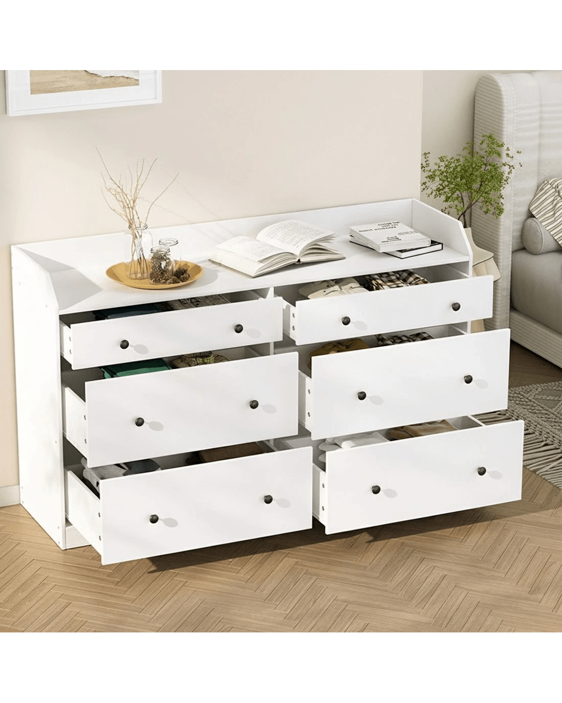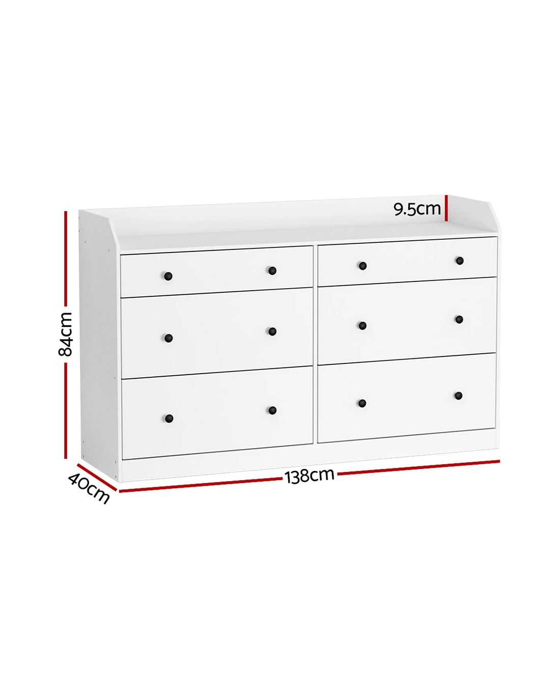 Introducing the Artiss Pete Chest of Drawers. Made with a high-density particleboard frame for high durability, the chest of drawers is designed to last. With a generous top shelf and six spacious drawers, each fitted with a smooth glide mechanism, it provides ample storage to keep your space organized and clutter-free. The sleek drawer handles and anti-rust-coated drawer runners allow for smooth and hassle-free operation at all times. This chest of drawers, offering a blend of style and utility, is an unmissable addition to your furniture ensemble.