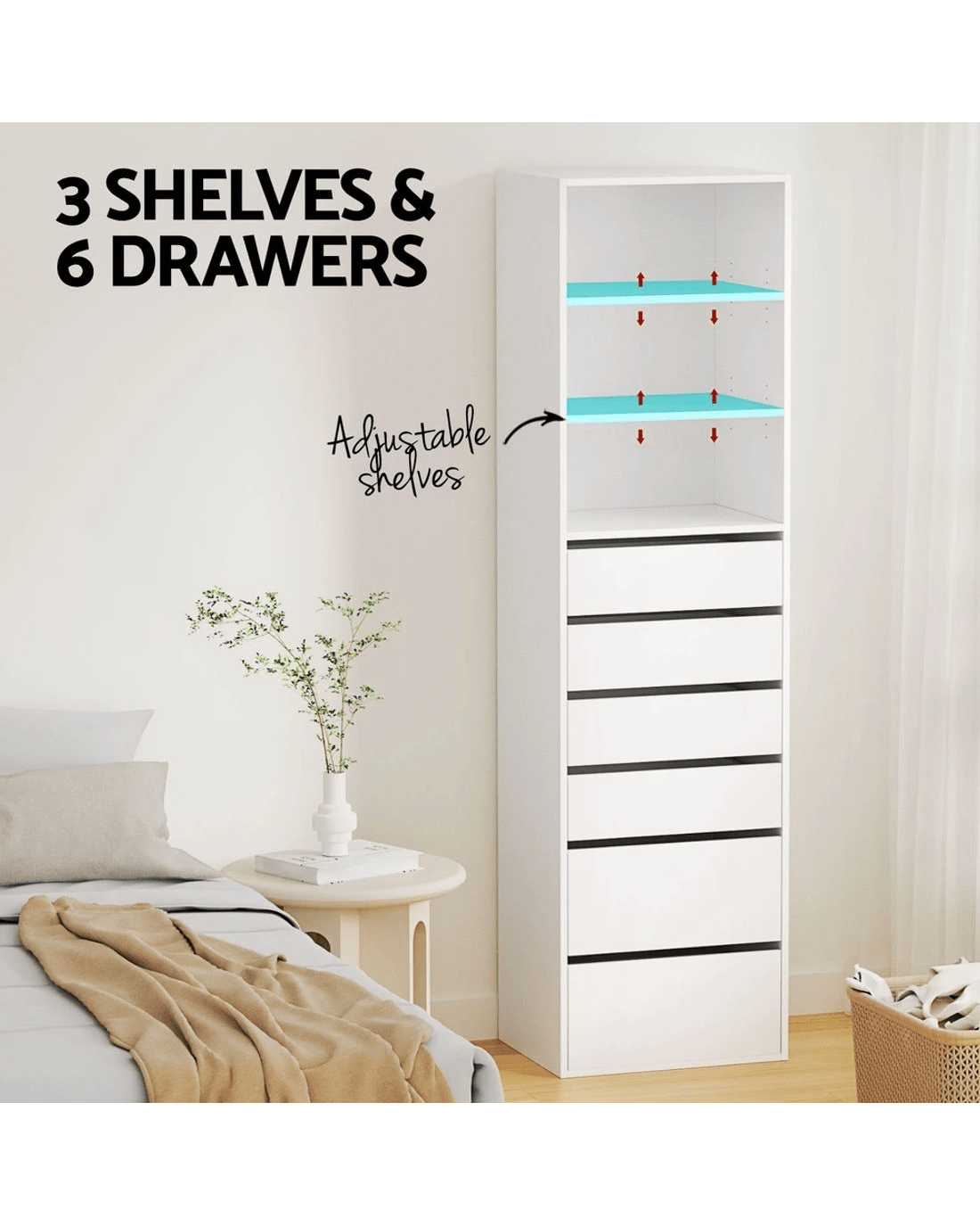 Add a sleek and functional touch to your space with the Artiss Chest of Drawers. Featuring a modern handle-free design, this chest boasts six spacious storage drawers to keep your belongings organised and out of sight. Each drawer glides effortlessly on smooth sliding runners for convenient access, while the high weight capacity ensures it handles daily use with ease. A wall attachment is included for added stability, providing peace of mind. Low-maintenance and easy to clean, this chest of drawers is perfect for bedrooms, living rooms, or any area needing stylish storage.