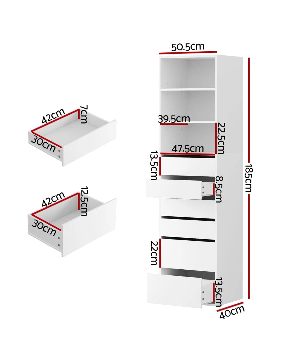 - 50.5cm x 40cm x 185cm