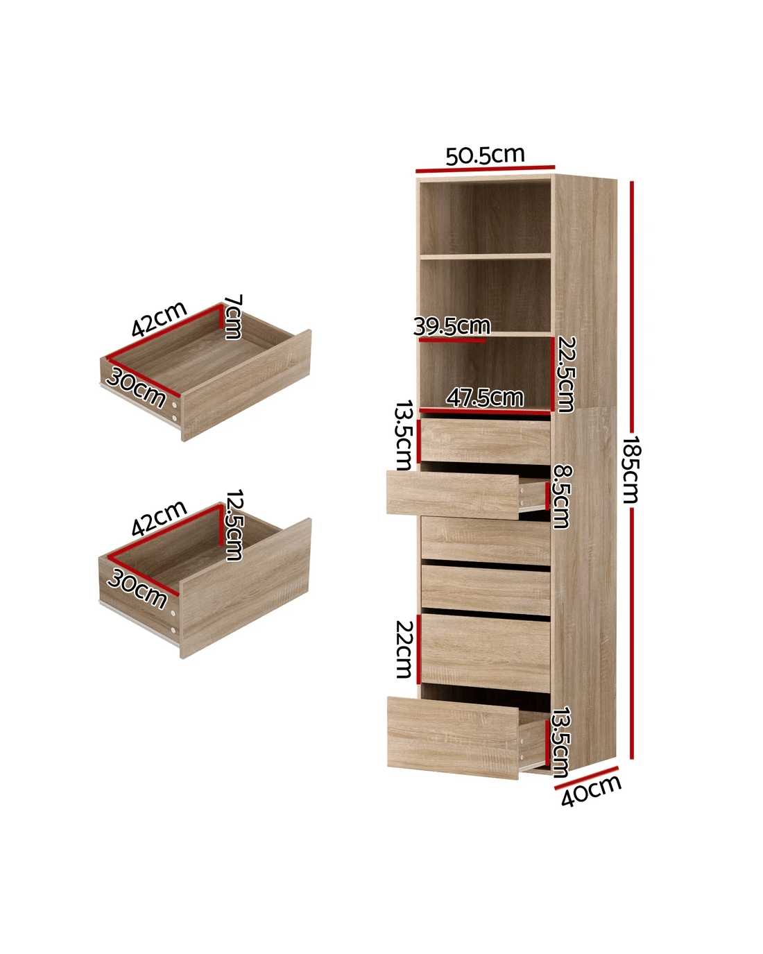 Overall dimensions: 50.5cm x 40cm x 185cm