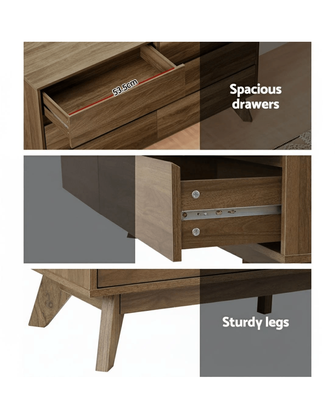 Drawer dimensions: 53.5cm x 28.5cm x 9.5cm