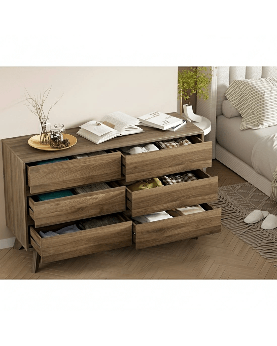 Six generously sized drawers for storage