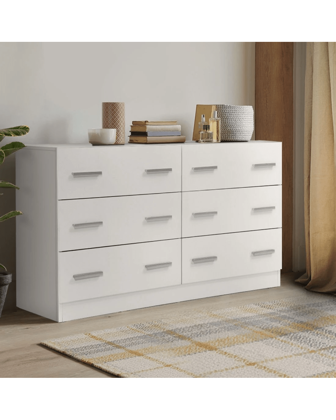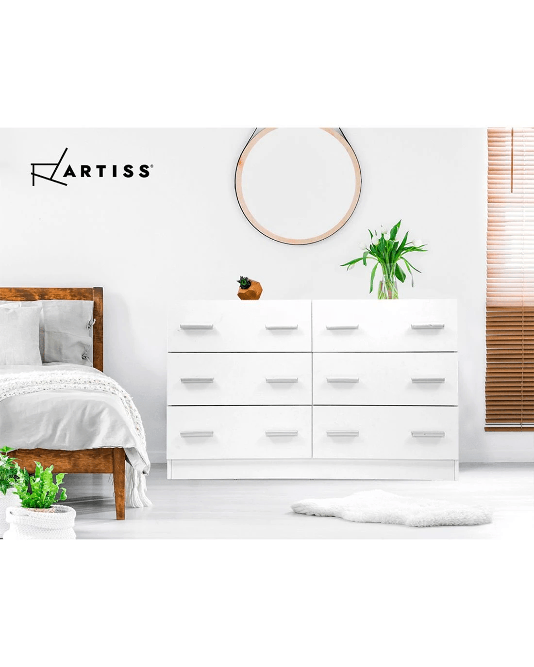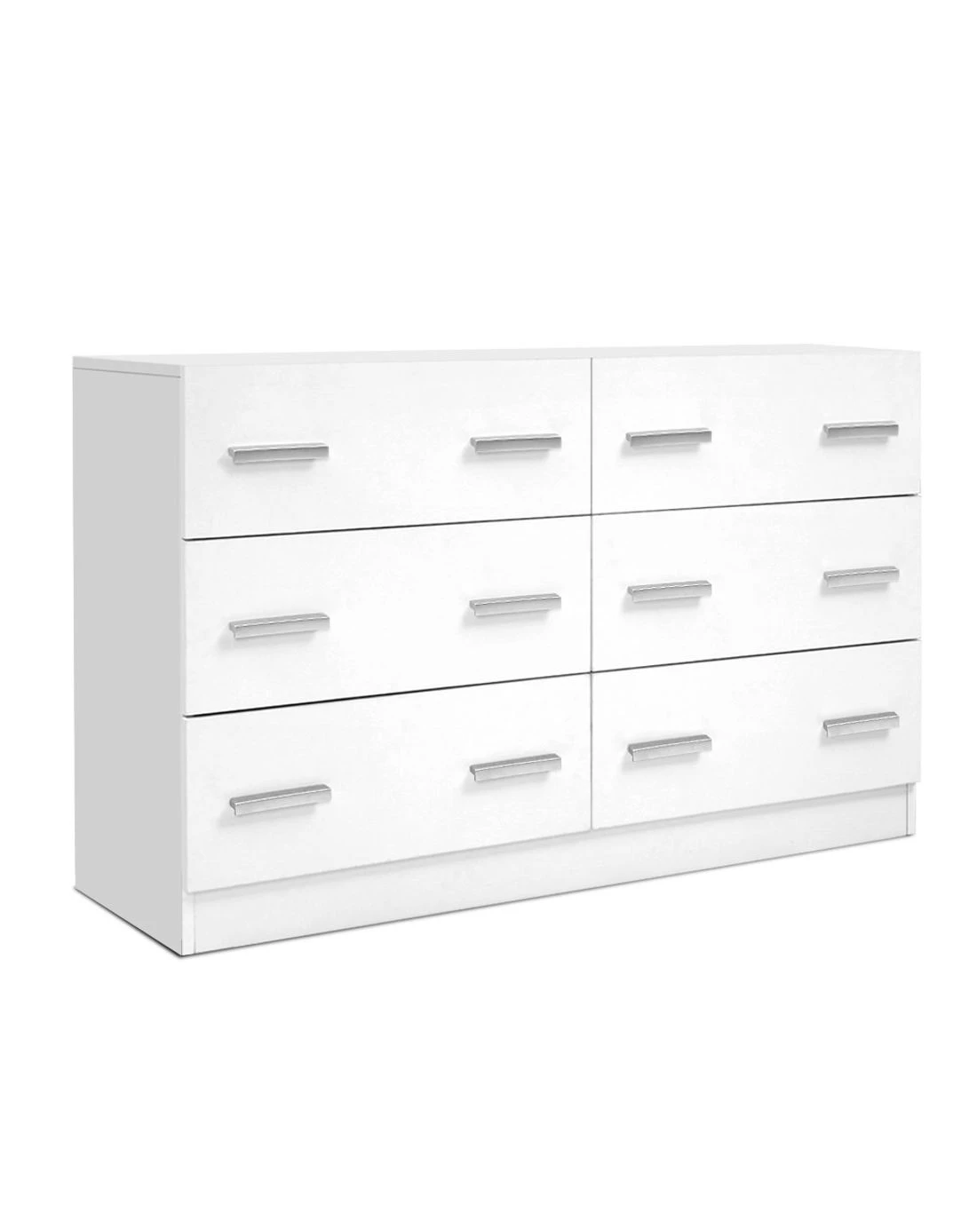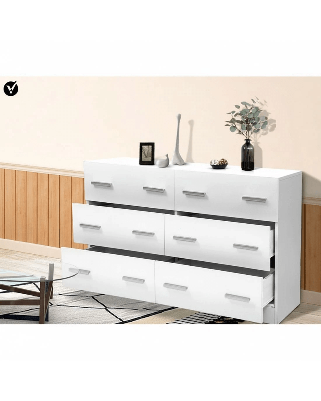 Practical and handsome, our Artiss 6-drawer Lowboy is perfect for those looking for extra storage space for your home. Contemporary and simply designed, this beauty features a flawless melamine finish with elegant handles that will easily match your home décor. Made with premium 15mm thick particle board with anti-rust coated drawer runners, our lowboy works ever so smoothly with minimum hassle. Not least, it provides plenty of storage space with six generous-sized drawers for all your clothing, fashion essentials and more.