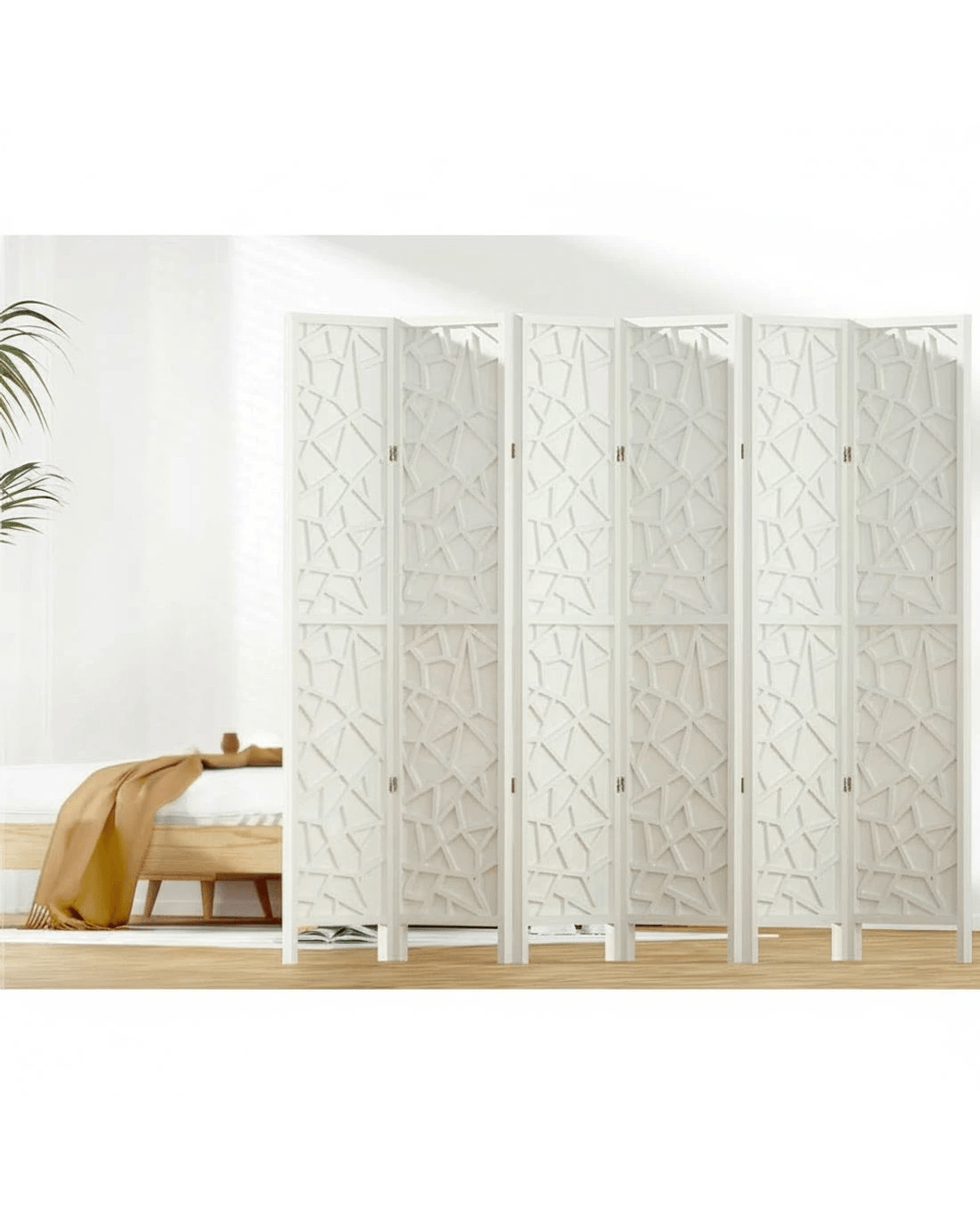 Need some privacy? Or want to make more practical use of space in your home? With our Artiss room dividers, you can create private pockets and zones or divide a large room into separate areas in minutes. It creates an illusion of different rooms without the need to add a solid wall. You can choose from our 3, 4, 6, or 8-panel room dividers in white, black, and natural wood tones. They feature solid pine wood construction with durable and breathable non-woven fabric, which ensures longlasting use. The room divider screen boasts eco-friendly and non-toxic paint that offers good resistance against cracks, fading, water, and corrosion. Additionally, its lightweight and portable design makes it easy to move from one room to another effortlessly. The panels of our room divider can also be folded, and the two-way metal hinges ensure sturdiness and ultimate stability. You can even assemble the panels easily. Purchase our room dividers and create a private area wherever you like.
