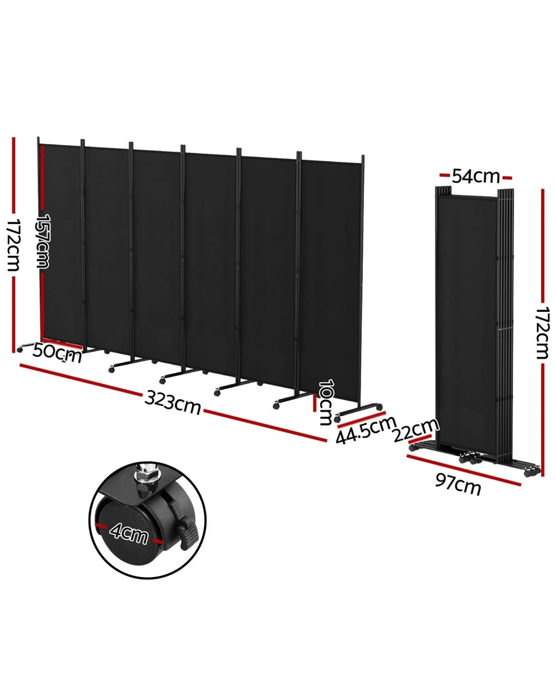 Dimensions (Folded): 97cm (W) x 22cm (D) x 172cm (H)