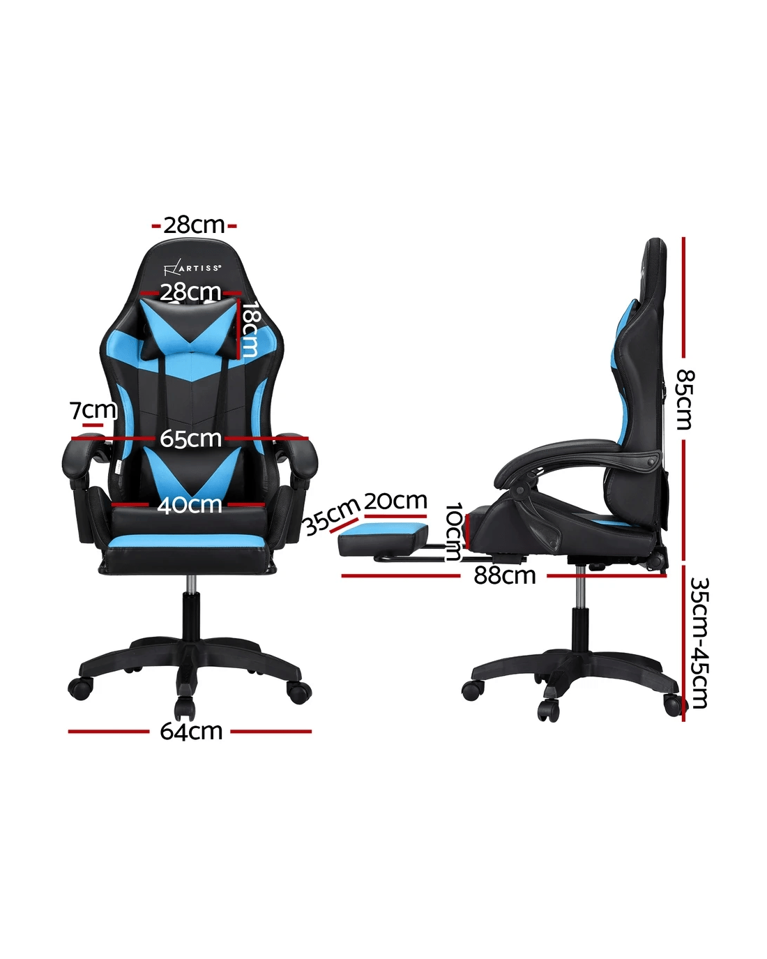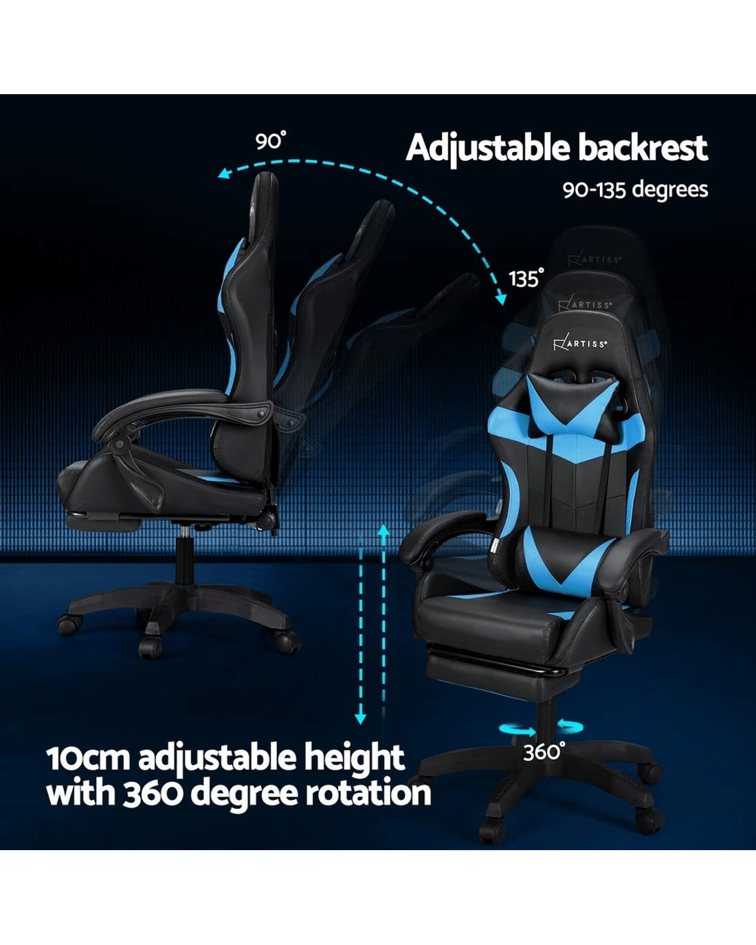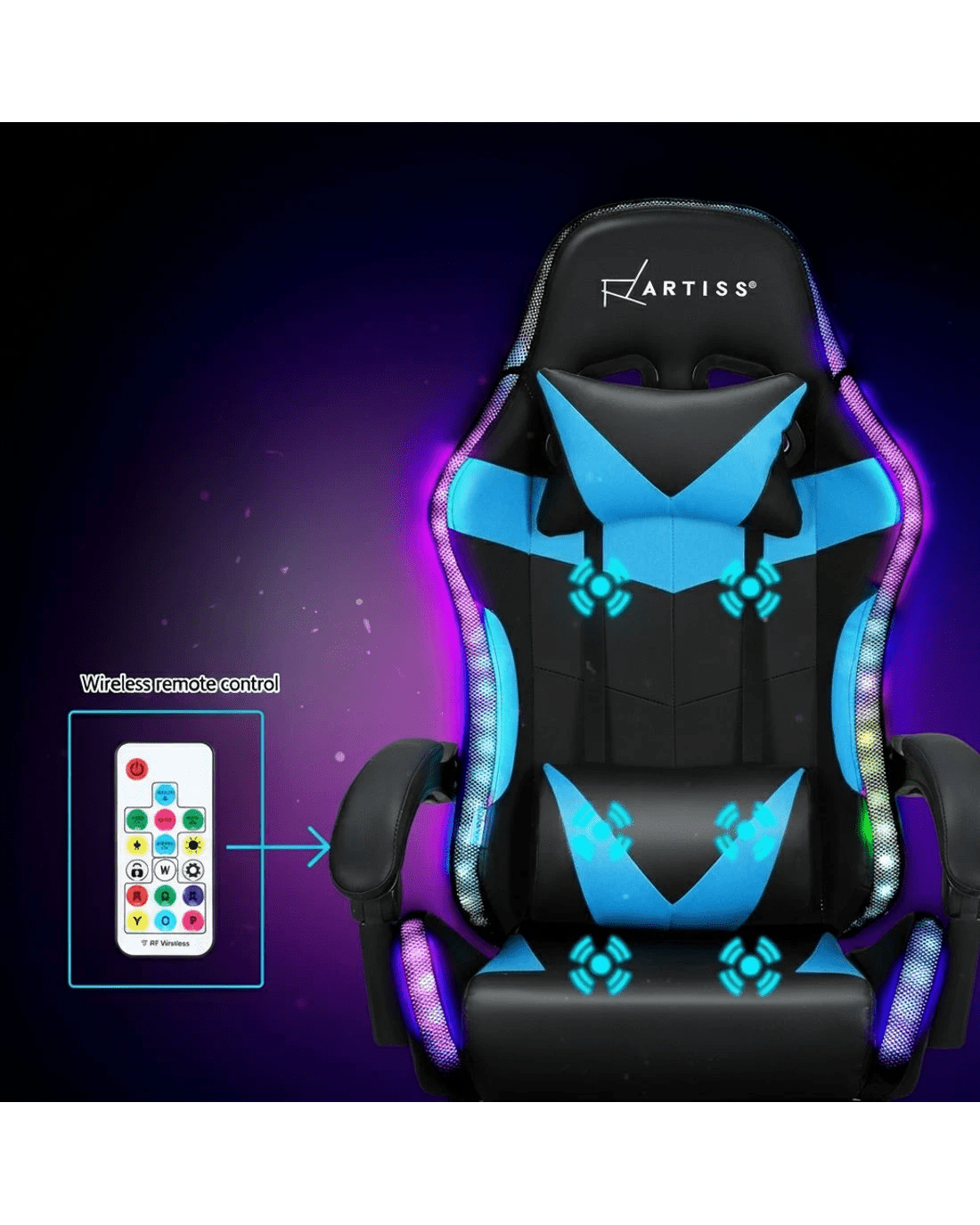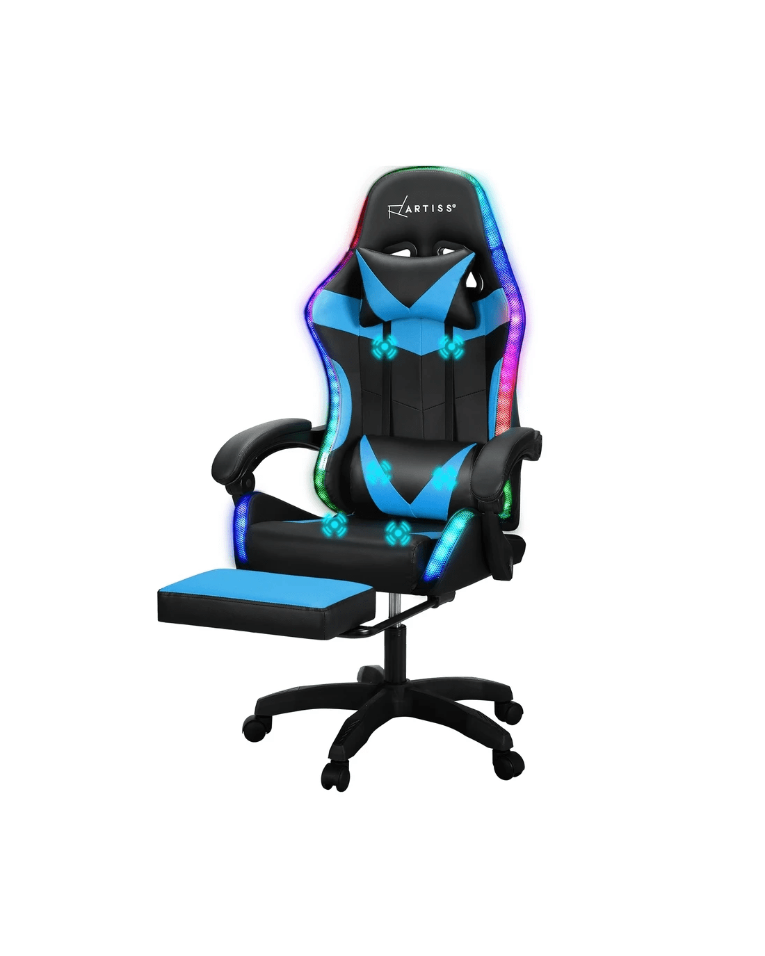 Artiss 6 Point Massage Gaming Office Chair 7 LED Footrest - Multi