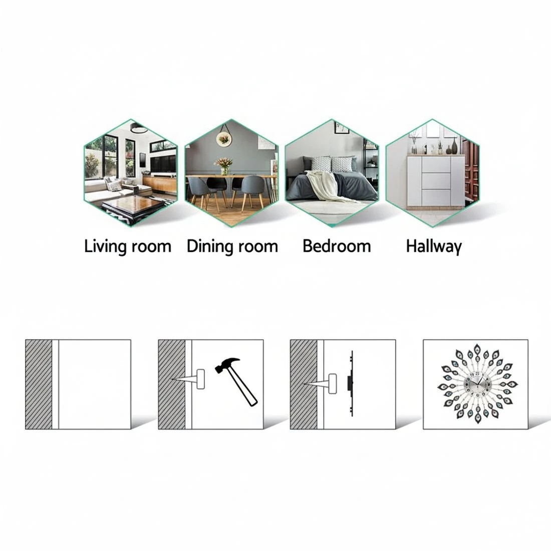 Artiss 60cm Wall Clock Large 3D Peacock Crystal - Black