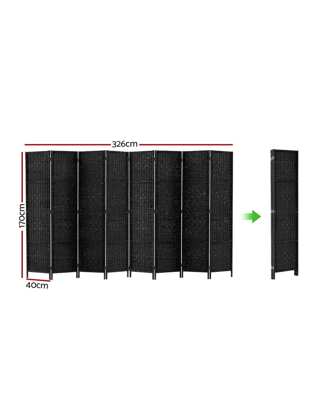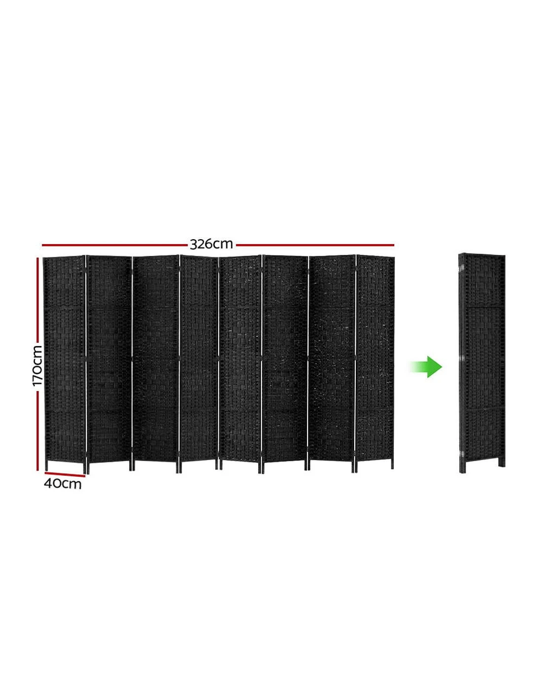 Sold by Aisle SixArtiss 8 Panel Room Divider Screen 326x170cm Woven - Black