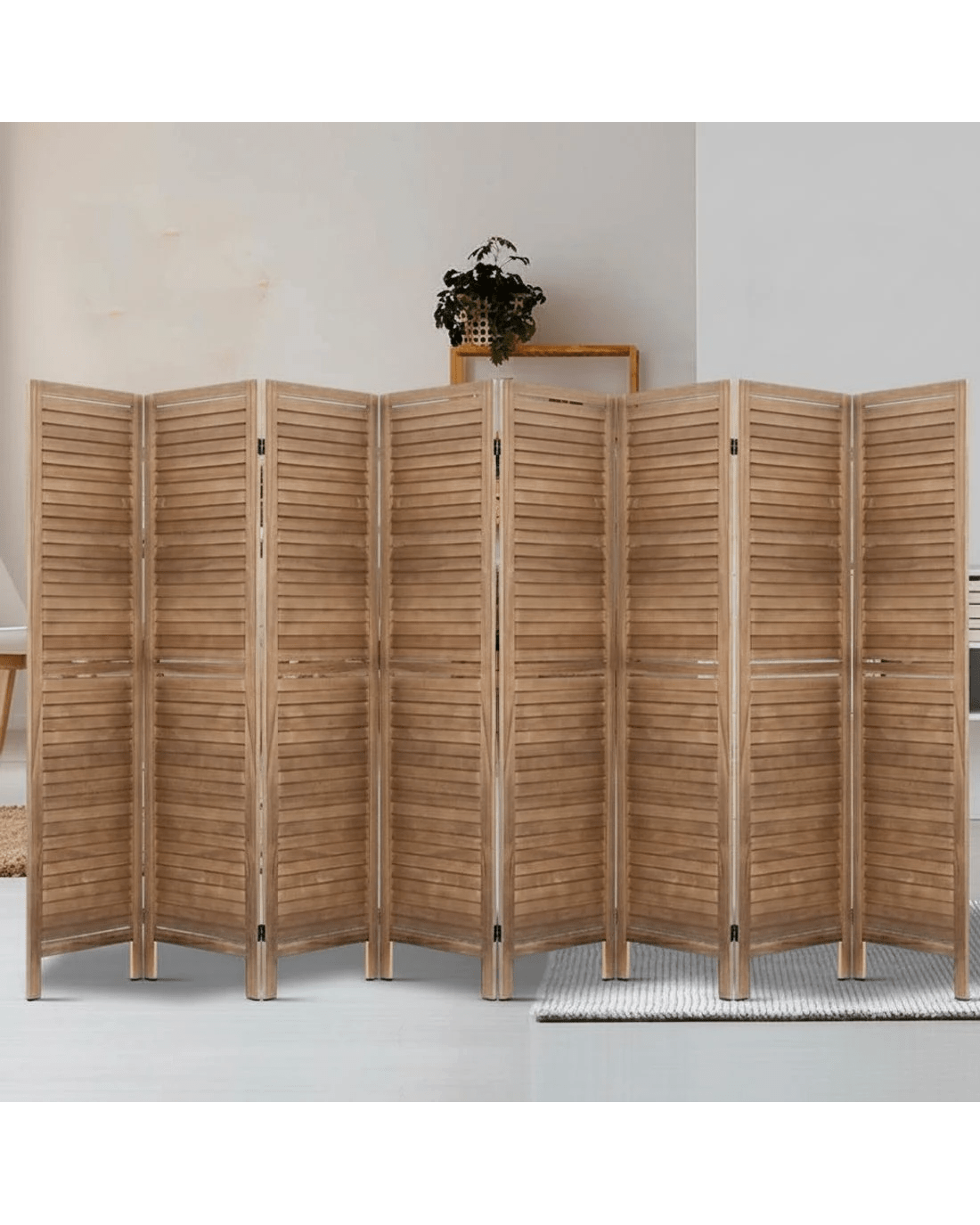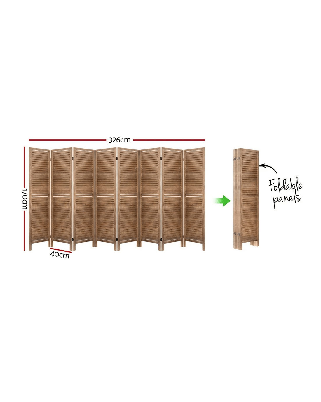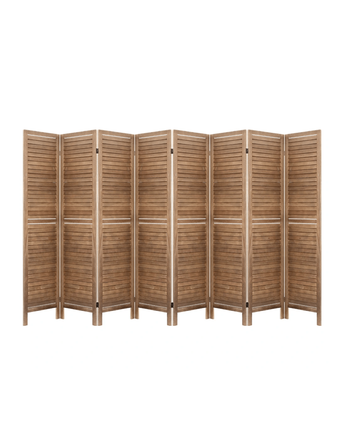 Artiss 8 Panel Room Divider Screen 326x170cm Louver Oak - Brown