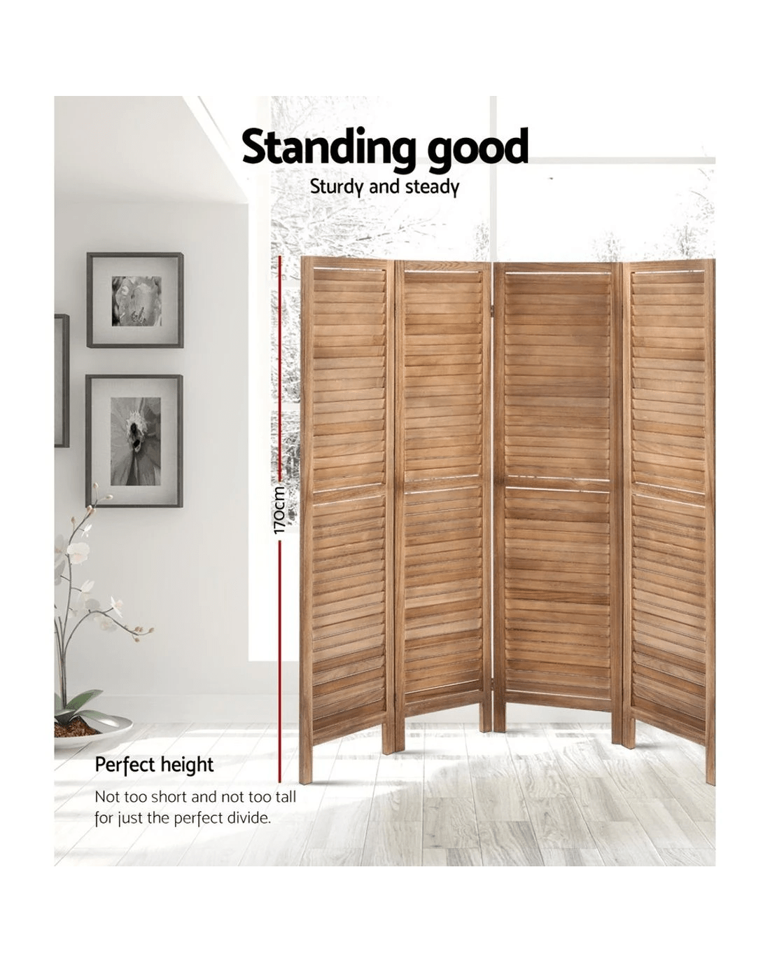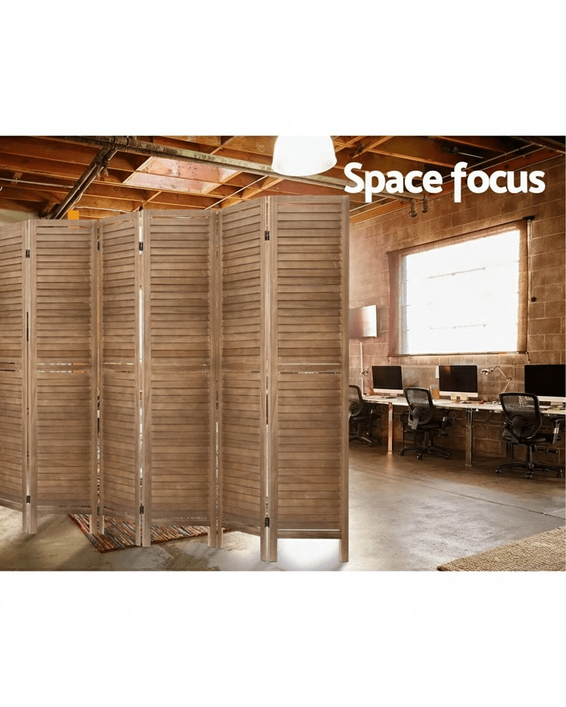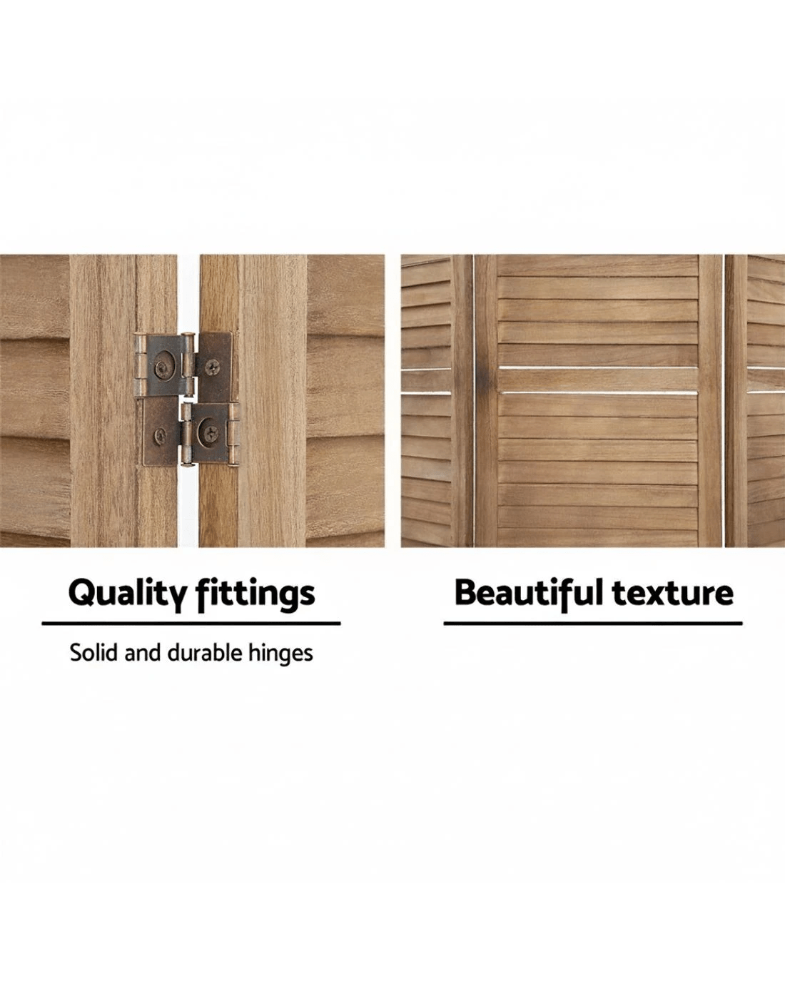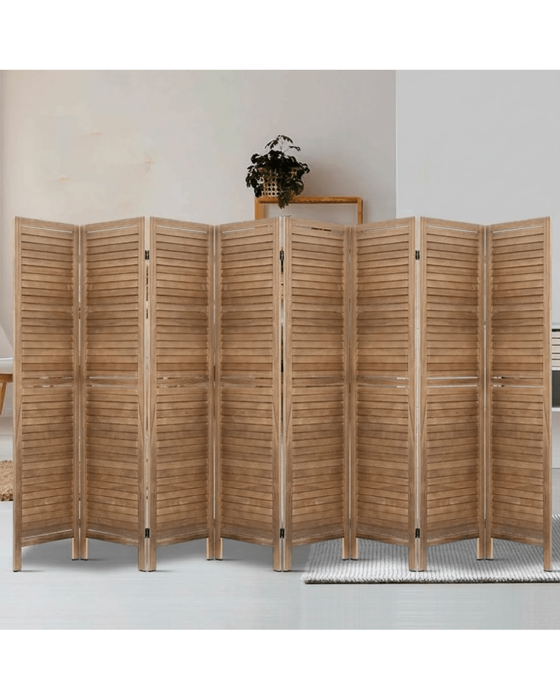 Artiss 8 Panel Room Divider Screen 326x170cm Louver Oak - Brown