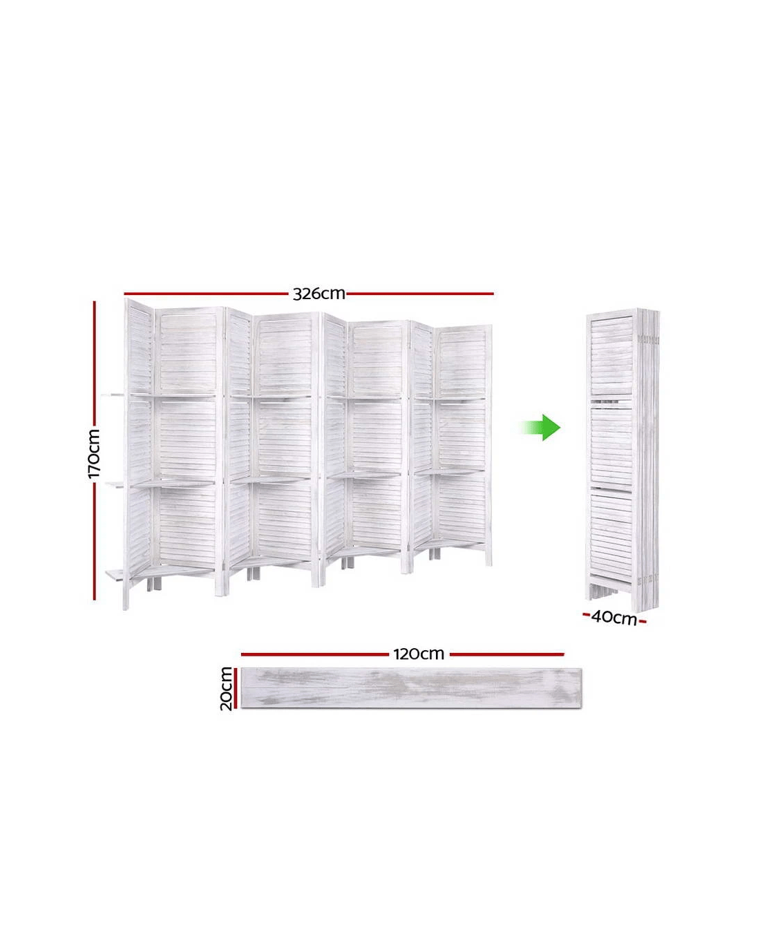 Sold by Aisle SixArtiss 8 Panel Room Divider Screen 326x170cm Shelf - White
