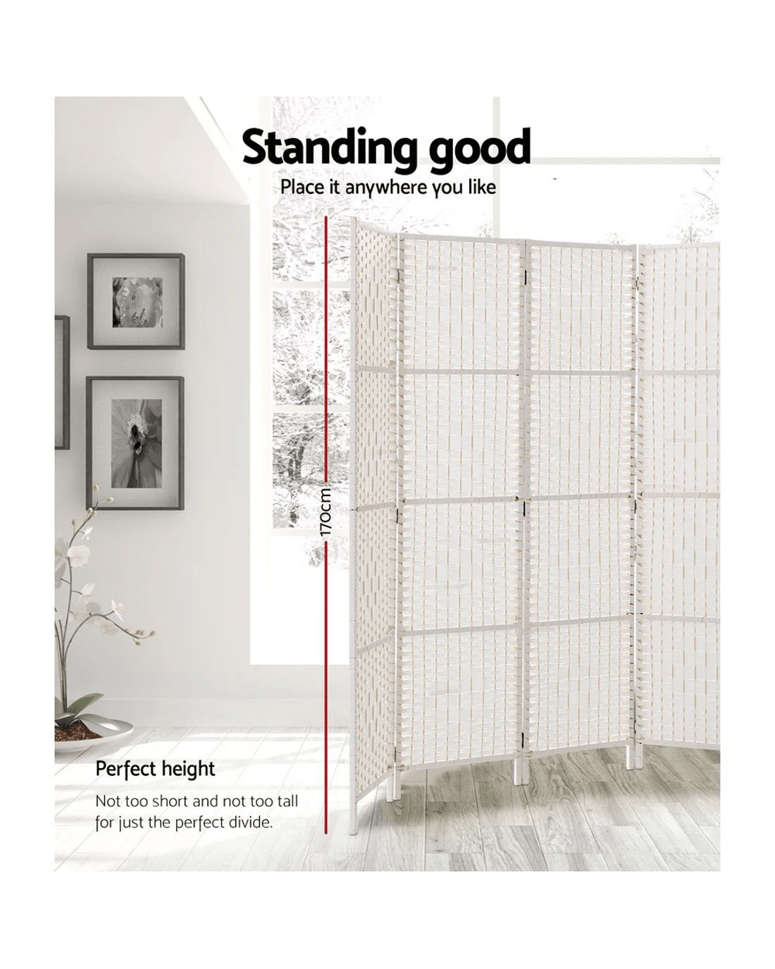 When you need instant private space, our 8-panel room divider helps create dedicated zones in the most hassle-free way. With its exotic and elegant design, our elegant panel divider certainly stands out from the looks of mundane dividers. Made from solid poplar wood, the divider is non-toxic, fade-resistant, waterproof and breathable. As for panels , they're beautifully crafted from rolled paper that mimics rattan look and feel. Lightweight and yet sturdy, our room divider utilises 2-way metal hinges to cope with robust use. Not least, the panels are also easily foldable for space saving storage.