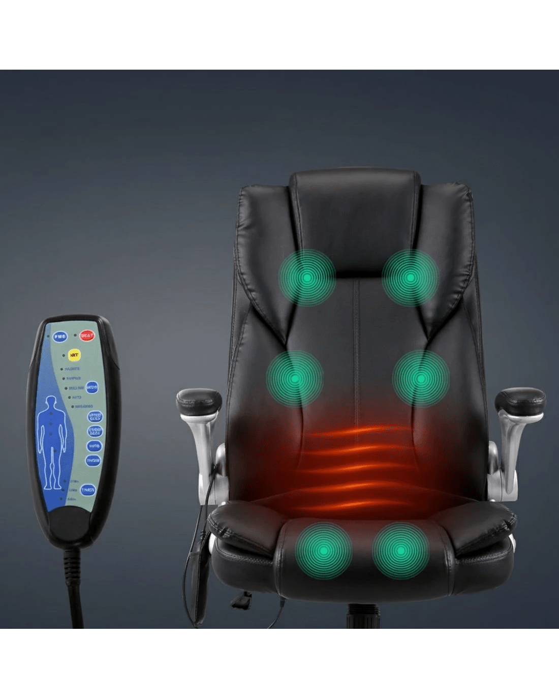 Eight vibration massage points at 4 levels - Upper back, lower back, hips, and thighs