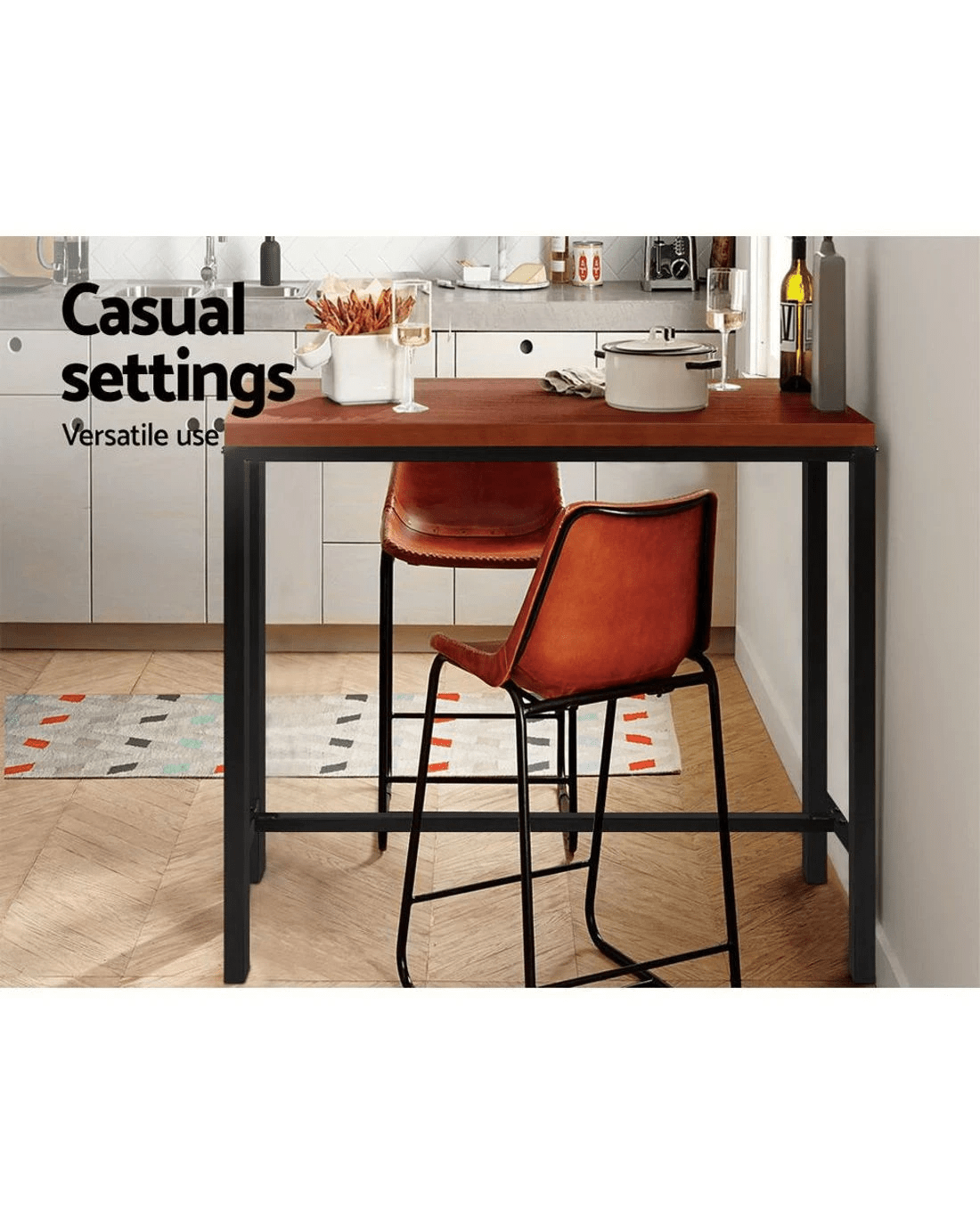 With its industrial-inspired design, the Artiss Alex Bar Table certainly stands out from the crowd. It features MDF table top that is smooth to the finish and pleasant to the feel. Likewise, the reinforced steel frame gives the table an extremely rock solid stance. Finished in durable powder coating for the frame, the table is rust-proof and made to last. Not least, the sturdy T-shape design, heavy-duty fixings and anti-slip feet ensure that the table stays firmly in place even with robust use. Complete the setting with our Alex bar stool for a style that is timeless and classic.